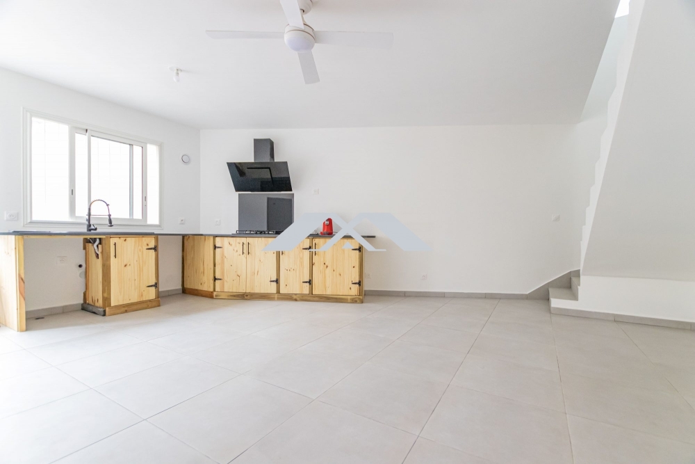 MAXImmo vous propose à Saint-Joseph, quartier Carosse cette jolie maison jumelée de type F4 d'environ 86 m² habitables. Fonctionnelle et lumineuse, elle offre au rez-de-chaussée une chambre parentale avec salle d'eau/wc, un beau séjour avec cuisine ouverte. À l'étage : mezzanine avec rangements, une salle d'eau avec wc et deux belles chambres. Sans vis-à-vis et trés bien isolée, édifiée sur une parcelle d'environ 145 m² entièrement clôturée avec portail automatique et stationnement pour 2 à 3 véhicules. Idéalement située à 300 m d'altitude, cette maison n'attend que vos valises !