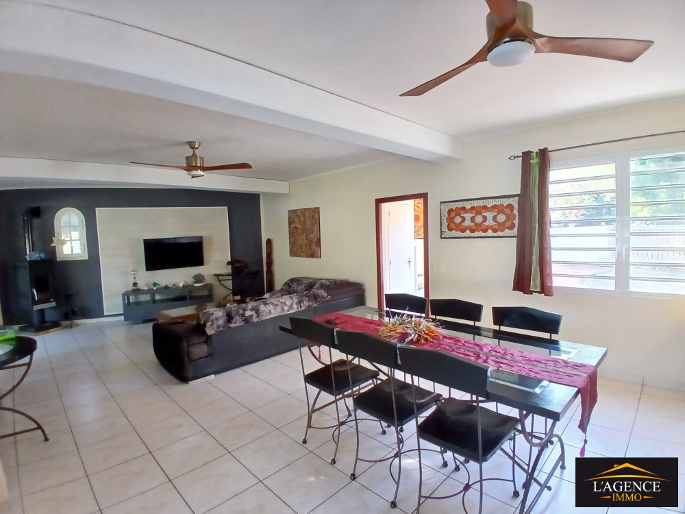 En extérieur une grande terrasse couverte d'environ 50m² avec coin piscine et une dépendance composée d'une pièce principale climatisée et d'une salle d'eau avec WC.