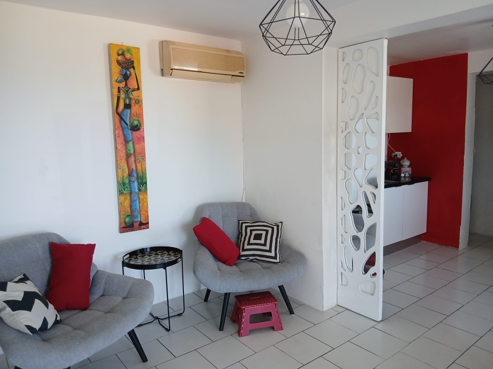 En haut de villa, vous serez séduit par la terrasse de plus de 30 m² sur laquelle vous pourrez profiter d'une vue exceptionnelle sur la mer des Caraïbes et des couchers de soleil : Idéal pour des moments conviviaux en famille ou entre amis.