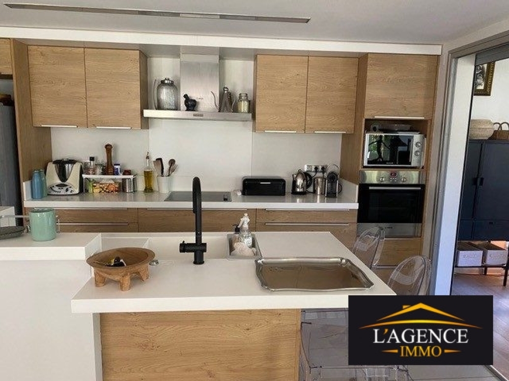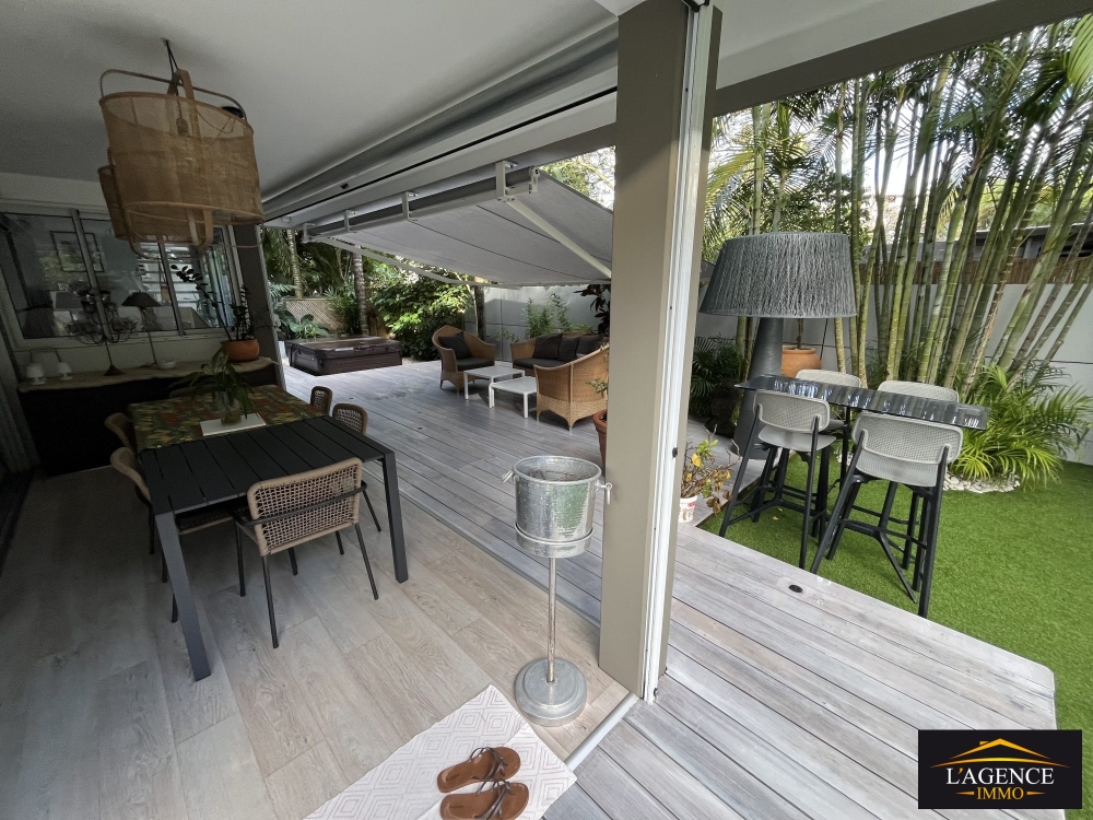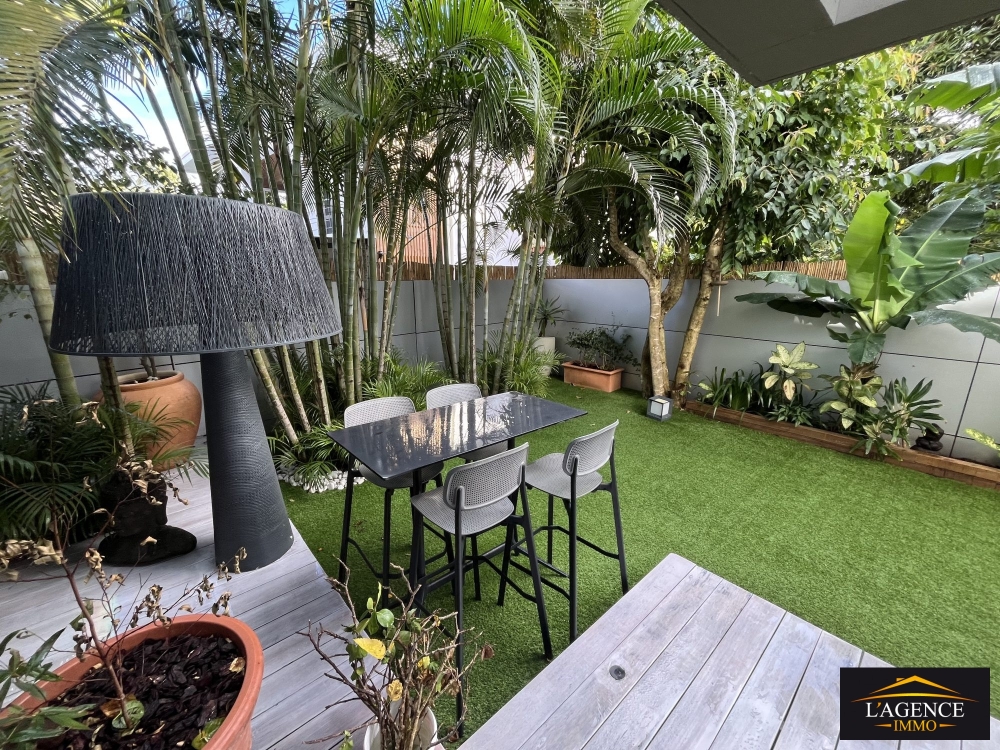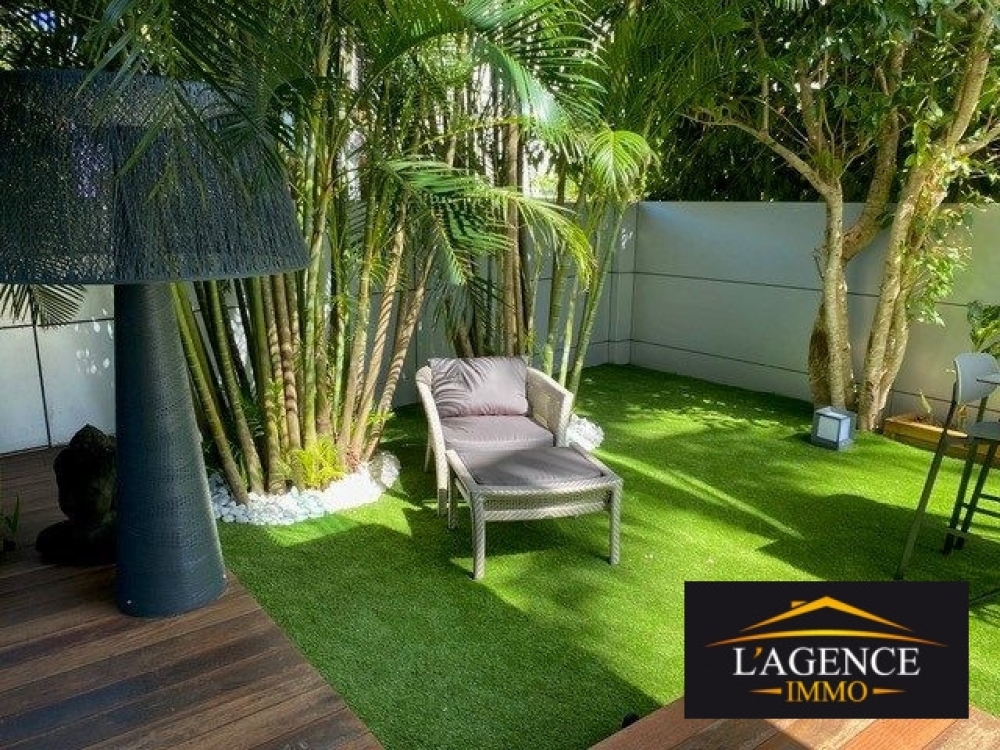 Non meublé, prestations haut de gamme : 96 m² habitables, 160 m² de terrasses couvertes et jardin arboré et clôturé, cellier 5 m².