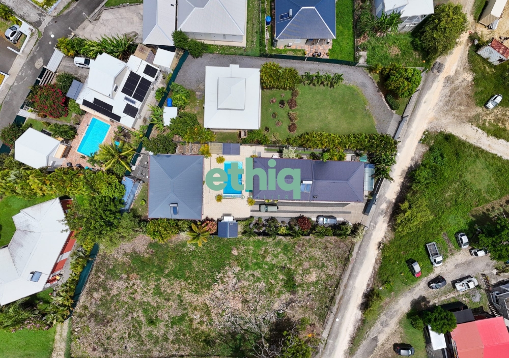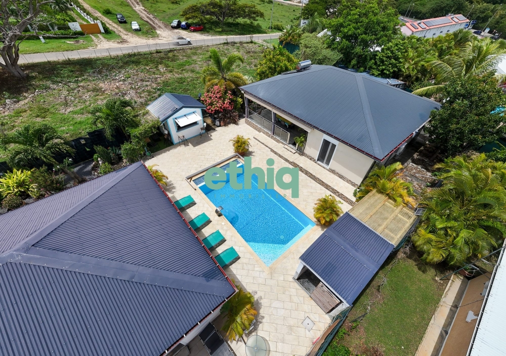 À vendre, ensemble immobilier haut de gamme construit en 2019 sur 1 200 m² de terrain, situé à 5 minutes de la plage de Bois Jolan.