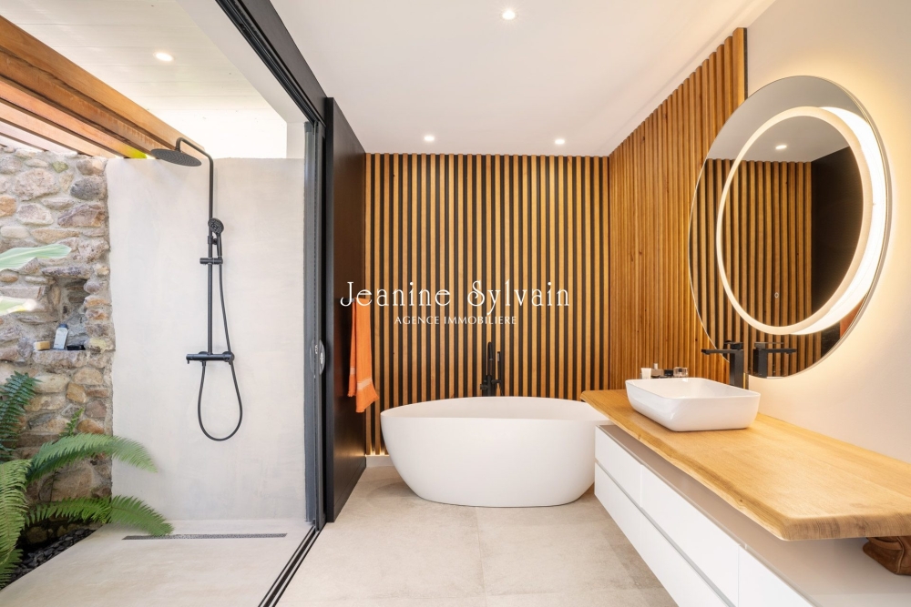 Matériaux de qualité, très beaux volumes pour cette propriété de 3 chambres dont une suite parentale avec dressing, salle de bain et douche tropicale.