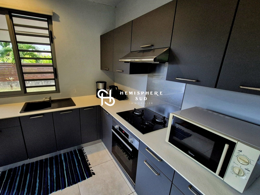 Sur une parcelle végétalisée de 400 m², close et sécurisée par un portail électrifiée, cette ravissante maison F3, d'une superficie de 80 m² se compose : d'un salon avec cuisine prolongés par une terrasse couverte, de deux chambres, d'une salle de bains, et d'un stationnement.