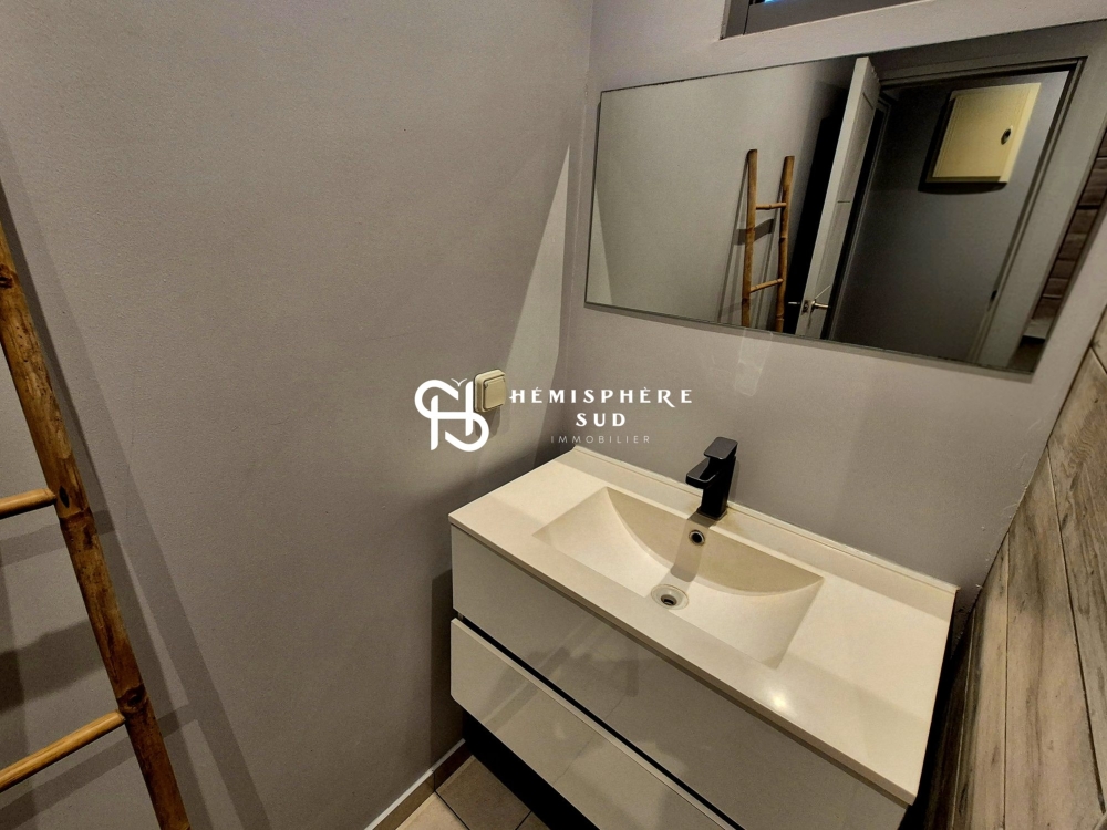La proximité des grands axes, des plages et des commerces, la tranquillité d'un quartier familial, un logement très agréable et entièrement meublé.