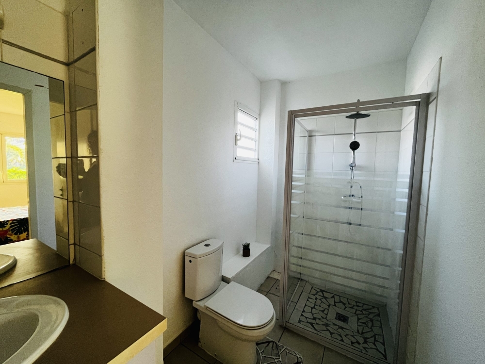 Exclusivité HOP! IMMOBILIER. Découvrez ce lumineux T2 de 53 m2 habitables, terrasse comprise, idéalement situé à 10 minutes de Jarry dans un secteur calme de Petit-Bourg. L'appartement entièrement meublé se trouve au rez de chaussée d'un petit bâtiment d'une résidence de 2011 comprenant 60 lots répartis en 4 bâtiments d'un étage maximum. Une place de parking privative est à votre disposition.