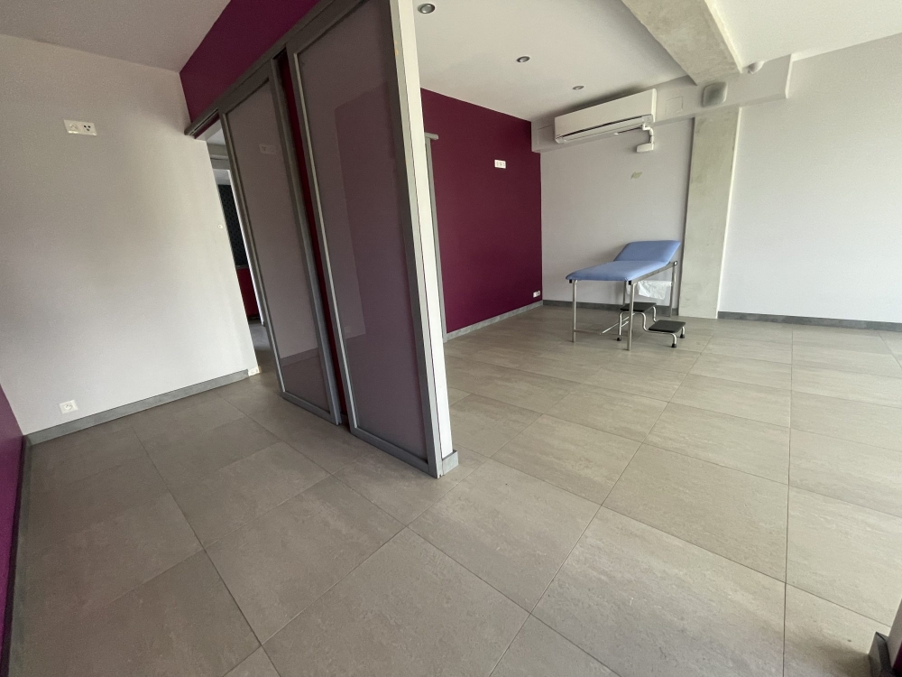 Il est composé d'une salle d'attente de 8.25m², d'une pièce avant de 18.65m² climatisée, d'une pièce arrière de 12.70m² également climatisée, d'une cuisine meublée de 8.30m² et d'un WC séparé avec lave main de 2.70m².