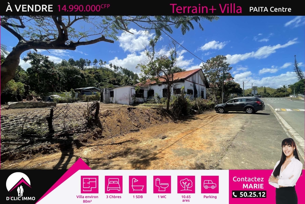 Idéalement situé à PAITA Centre, à l'angle de la rue des Anciens combattants et de la rue François Douyere, à côté de l'Eglise, de la Caserne des Pompiers et face à l'école Heinrich Ohlen, l'agence D'CLIC IMMO vous propose grand terrain commercial de 10.65 ares, entièrement plat avec une construction en dur de 80m² à raser ou rénover entièrement.