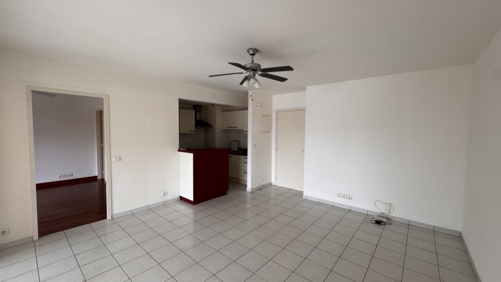 Au calme, vue dégagée, Appartement F2 au 2ème étage avec ascenseur, comprenant : cuisine équipée ouverte sur séjour, chambre climatisée avec placards et salle d'eau.