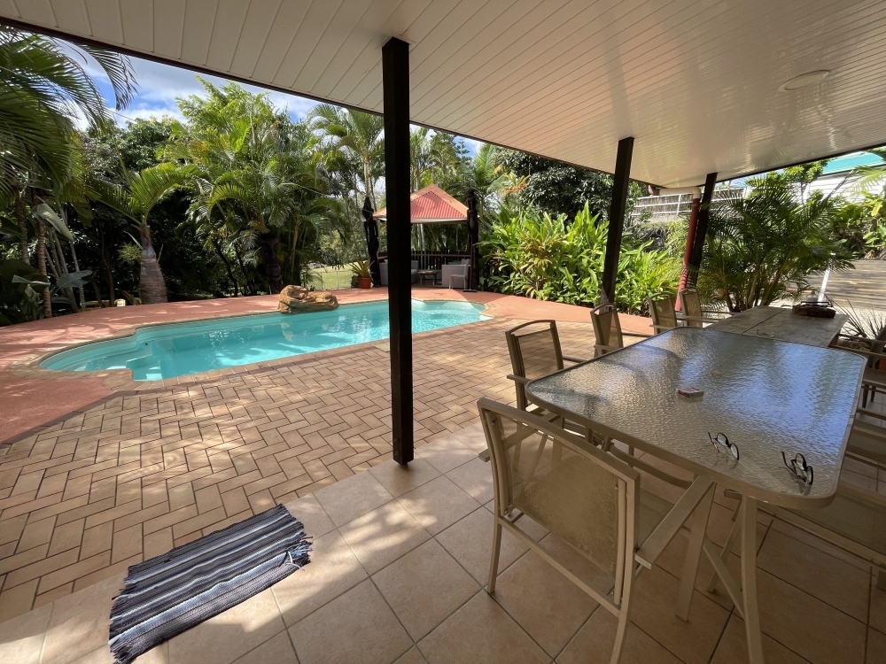 Vous profiterez d'une première grande terrasse couverte avant de 25m² donnant sur une belle piscine au sel (type coque), entourée d'un revêtement neuf antidérapant, d'un espace faré en bois de 11m², d'une seconde terrasse sur le côté de la villa de 25m², d'une troisième terrasse sur le côté de la villa d'environ 15m² avec espace buanderie, d'un grand carport à bateau avec belle hauteur d'environ 30m² avec espace atelier, le tout donnant sur un superbe terrain entièrement clôturé, arboré, aménagé, très bien entretenu, de 11.71 ares.