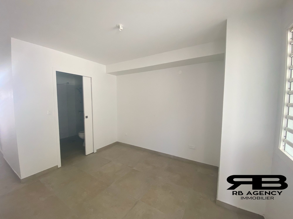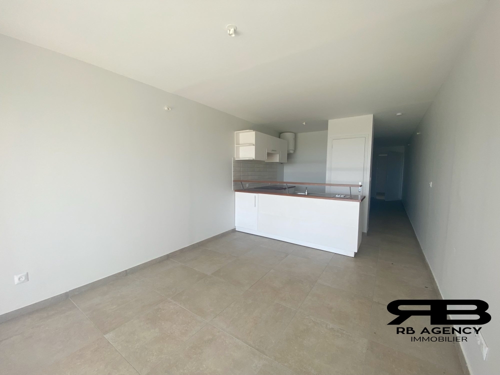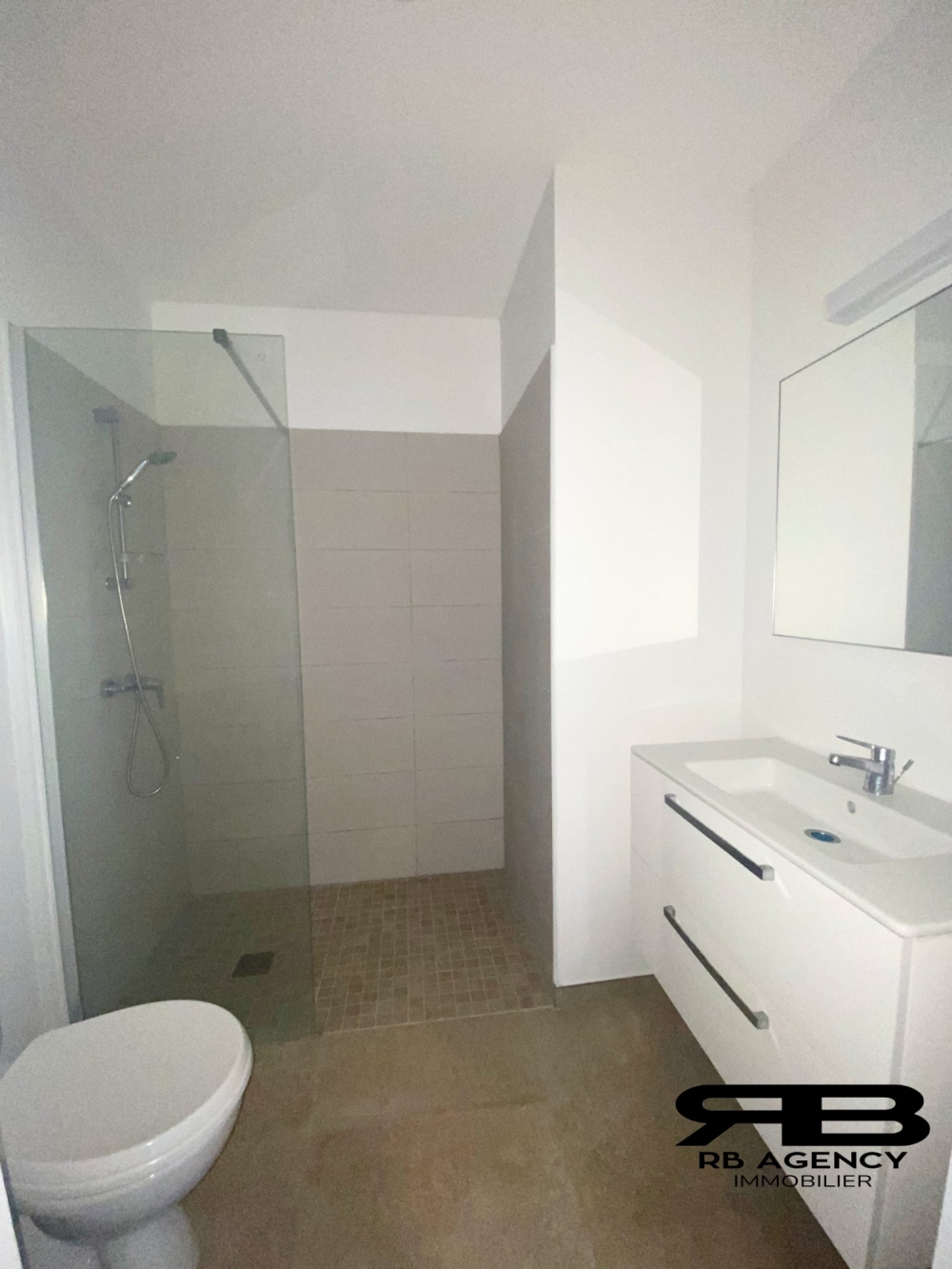 Grand studio en très bon état situé dans une petite résidence calme comprenant, une pièce principale climatisée avec un coin nuit qui peut être séparer par un rideau, une cuisine aménagée et équipée d'une plaque de cuisson, une salle d'eau moderne avec WC, une terrasse et un jardin avec petite vue mer.