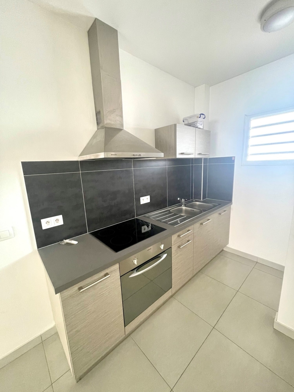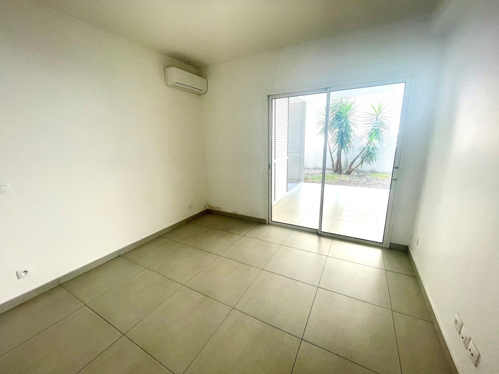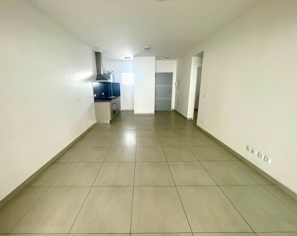 Charmant appartement F2 composé d'une cuisine ouverte sur un salon, une chambre climatisée avec placard, une salle d'eau avec WC et une buanderie.