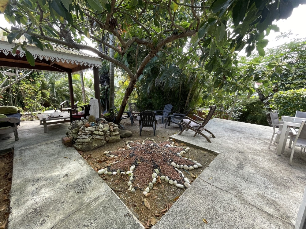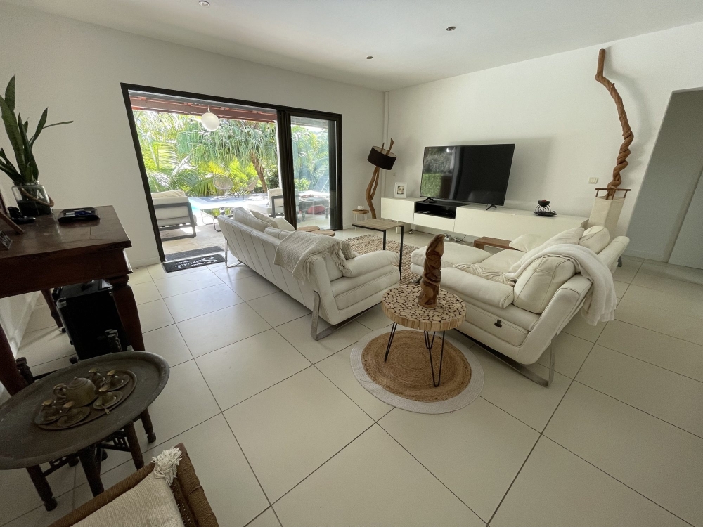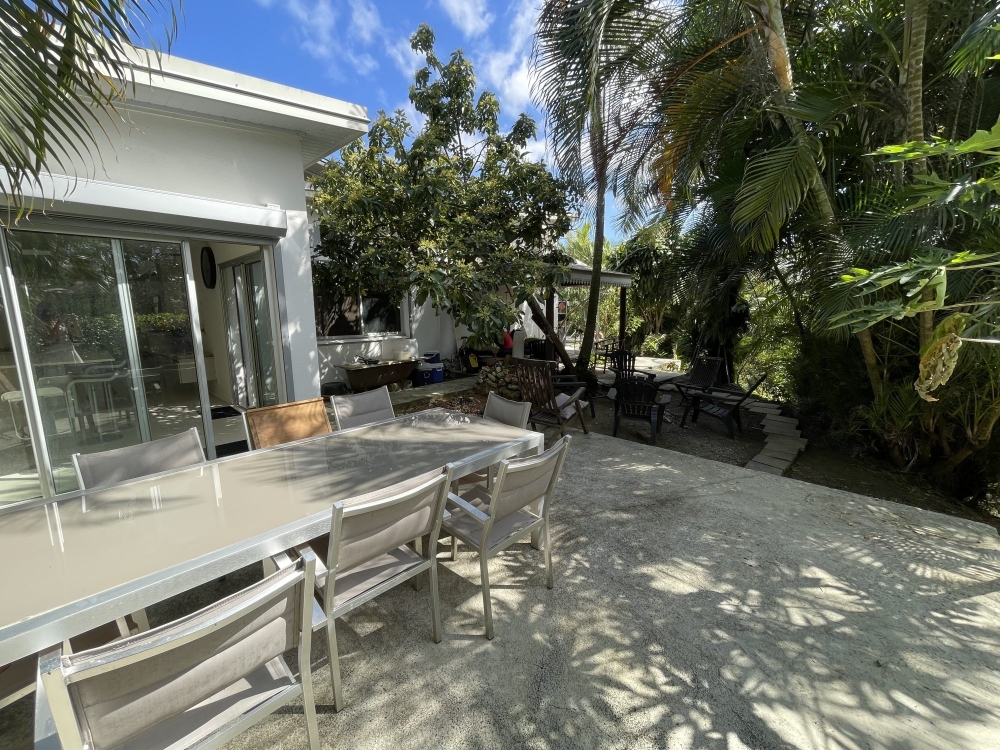 En extérieur, la villa dispose de superbes espaces de vie ! Une grande terrasse couverte dans le prolongement du séjour donnant sur une grande piscine à débordement, avec vue jardin et montagnes, un faré, une terrasse côté cuisine, le tout sur un superbe terrain arboré et aménagé de 10.80 ares, clôturé et sécurisé par un portail électrique.