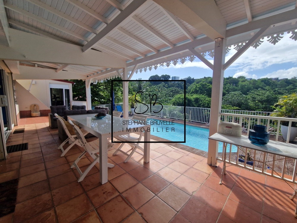SCHOELCHER : Proche Université : Du volume pour cette villa sur 3 niveaux ou l'espace de vie est autant volumineux qu'intime. Pour y accéder vous empruntez l'entrée commune avec l'appartement T4 actuellement loué (jusqu'en 2026) et vous descendez par les escaliers extérieurs jusqu'à découvrir les 140m² développé d'espace de vie principal : terrasse (ouvrant sur la piscine - vue sur la foret très dégagée), séjour, cuisine, buanderie, salle de sport (!!!) et sa salle d'eau. L'espace nuit au niveau intermédiaire est distribué par un grand palier : Suite parentale de 50m² avec salle d'eau, dressing, balcon privatif puis deux chambres avec accès terrasse et salle d'eau. Le bien dispose d'un garage, possibilité de faire une chambre étudiant complémentaire. Pour résumer = 210m² habitable, toutes les chambres ont accès à une terrasse, rendement locatif, secteur premium : de très très nombreuses qualités pour ce bien rare sur le secteur ! Plages, Centre de loisirs, activités sportives, écoles maternelles, primaires, collèges et université accessibles en moins de 5 minutes. Soumis au DPE : en cours. Contactez STEPHANIE BRUYELLE IMMOBILIER au 06 96 81 11 91