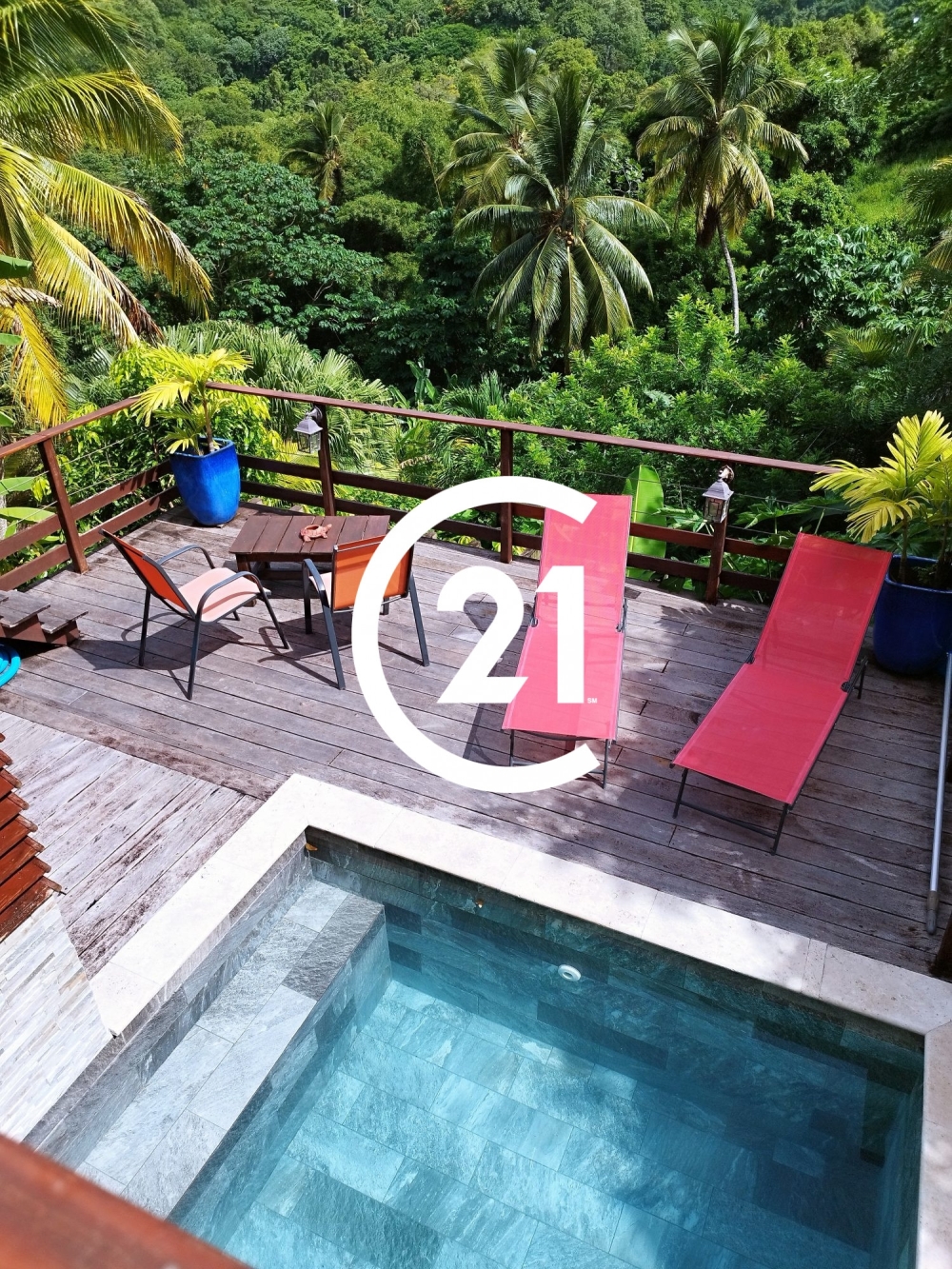 CENTURY 21 vous propose ce superbe ensemble immobilier niché au coeur d'un cadre verdoyant. Ce bien rare propose une habitation principale, trois lodges indépendants et une studette, chacun offrant une parfaite intimité grâce à l'absence de vis-à-vis. Cet ensemble se compose : - une habitation principale : un grand séjour lumineux, une cuisine aménagée et équipée, une chambre climatisée, une salle d'eau, un WC indépendant, une terrasse spacieuse pour profiter de l'extérieur et une piscine. - lodge 1 : une chambre climatisée / espace salon, une salle d'eau, un WC, un cuisine aménagée et équipée, une terrasse donnant sur une piscine. - lodge 2 : deux chambres climatisées, une salle d'eau, un WC, une terrasse, une piscine, une cuisine aménagée et équipée, ainsi qu'une seconde terrasse. - lodge 3 : une chambre climatisée, une salle d'eau, un WC, une cuisine aménagée et équipée, une terrasse et une piscine. - studio : une terrasse, une pièce principale avec douche, WC, ainsi qu'une lingerie pour plus de fonctionnalité. Superficie totale du terrain : 4 845 m². Environnement paisible, idéal pour se ressourcer. Excellente rentabilité locative, parfaite pour un investissement touristique ou une résidence principale avec des revenus complémentaires. Ce bien offre une combinaison unique de confort, de tranquillité et de potentiel économique. Ne laissez pas passer cette opportunité exceptionnelle!