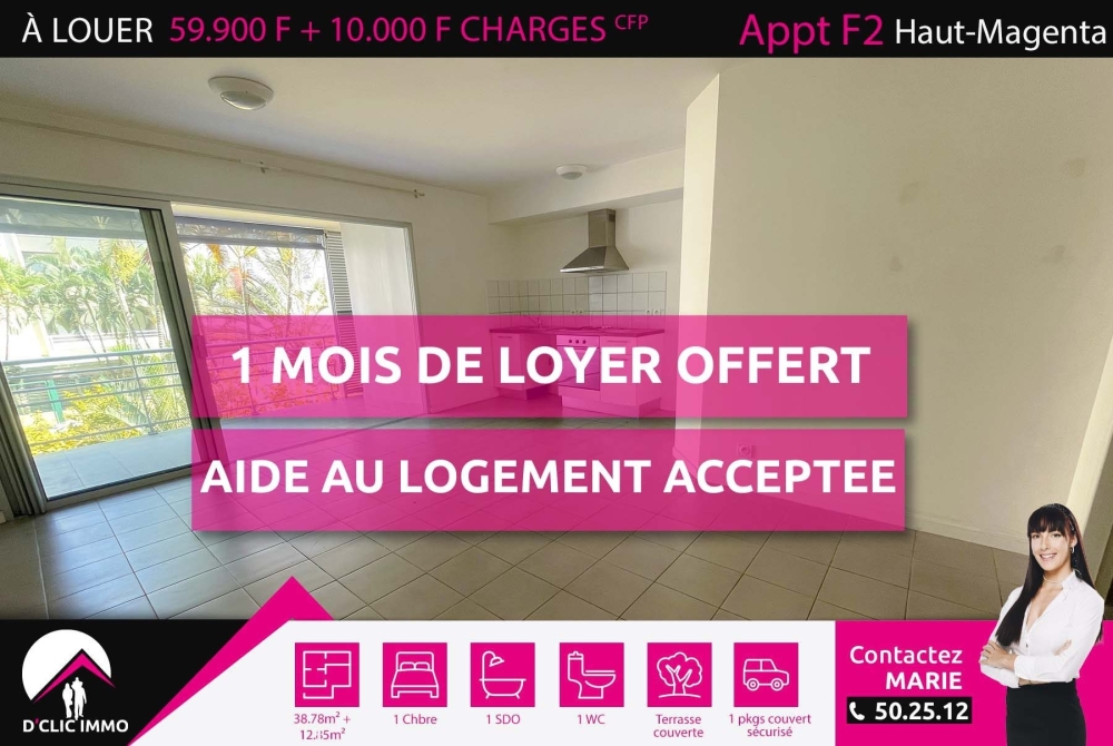 Idéalement situé, proche des commerces, des établissement scolaires et de toutes commodités dans le quartier de Haut-Magenta, l'agence D'CLIC IMMO vous propose un spacieux appartement de type F2 de 38.78m² habitable + 13m² de terrasse couverte + cellier + 1 place de stationnement couverte et privative, situé au R+1 de la Résidence PENDJARI, sécurisée, avec ascenseur.