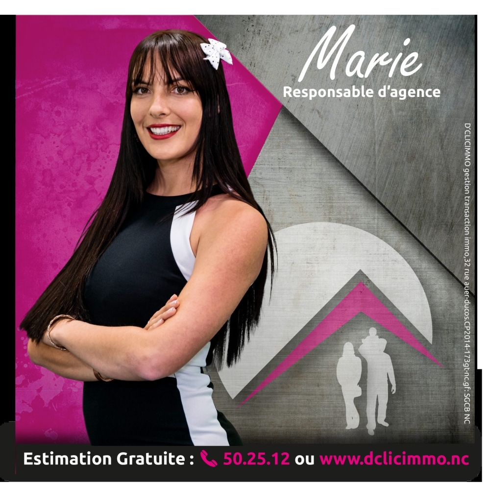 Pour toute question ou pour une visite, appelez Marie au 50.25.12 ou envoyez un email à transaction3@dclicimmo.nc. Vous n'êtes qu'à un clic du logement de vos rêves !