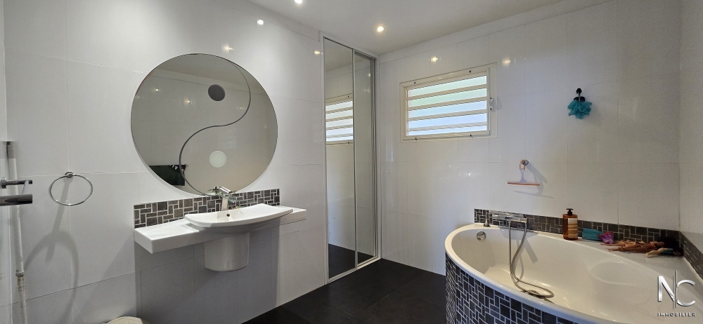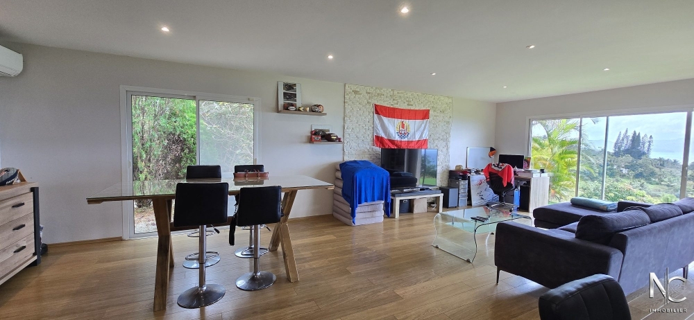 Située sur les hauteurs du Mont-Dore Sud et offrant une magnifique vue mer, villa traditionnelle F4 de 122 m² habitables offrant : séjour/salon ouvert sur une cuisine équipée, 3 chambres climatisées avec placards dont 1 suite parentale avec dressing et salle d'eau privative + wc, buanderie, 2ème salle d'eau et 2ème wc indépendant.