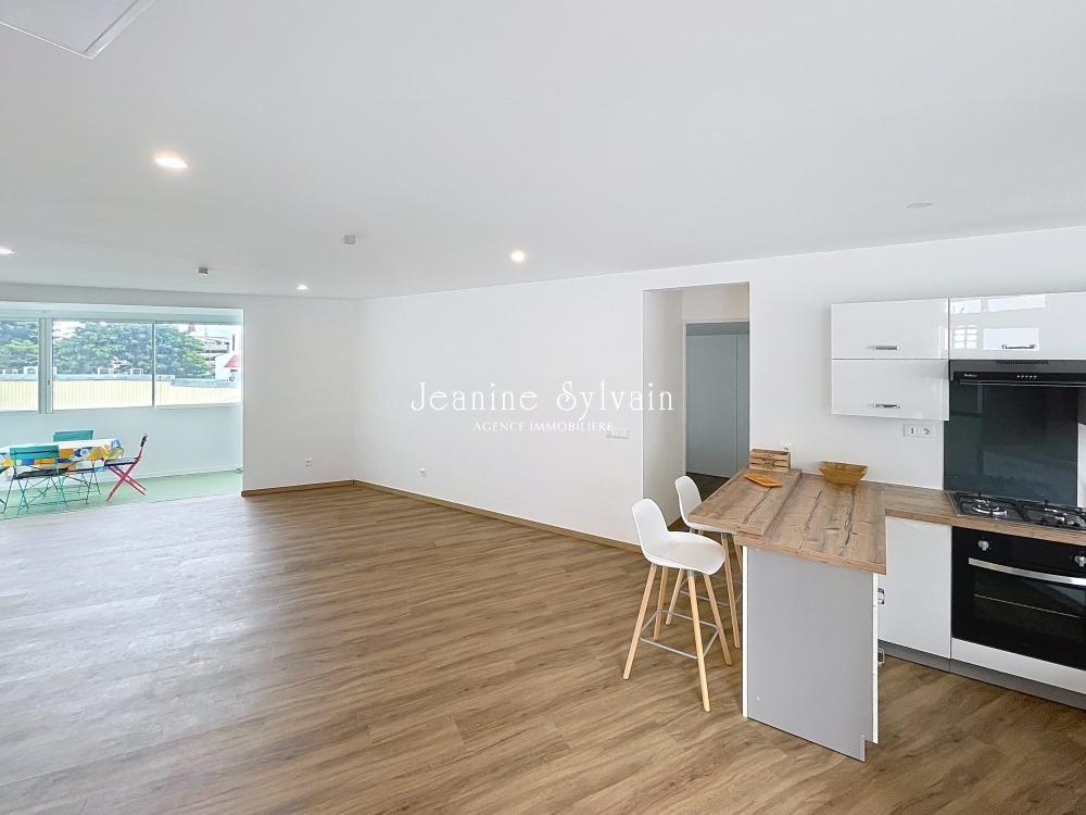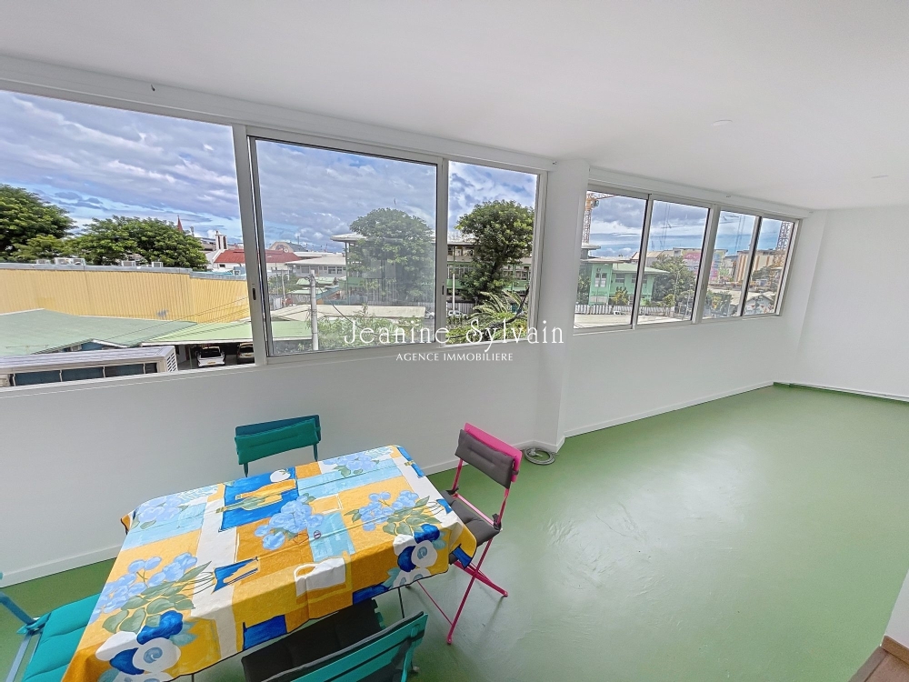Papeete, quartier de La Mission à deux pas du collège et Lycée La Mennais, grand F3 refait à neuf en dernier étage, cuisine moderne entièrement équipée ouverte sur le salon climatisé, grande terrasse fermée, deux chambres, dont une climatisée, une salle d'eau avec wc, coin buanderie sur la loggia, une place de parking privative non couverte.