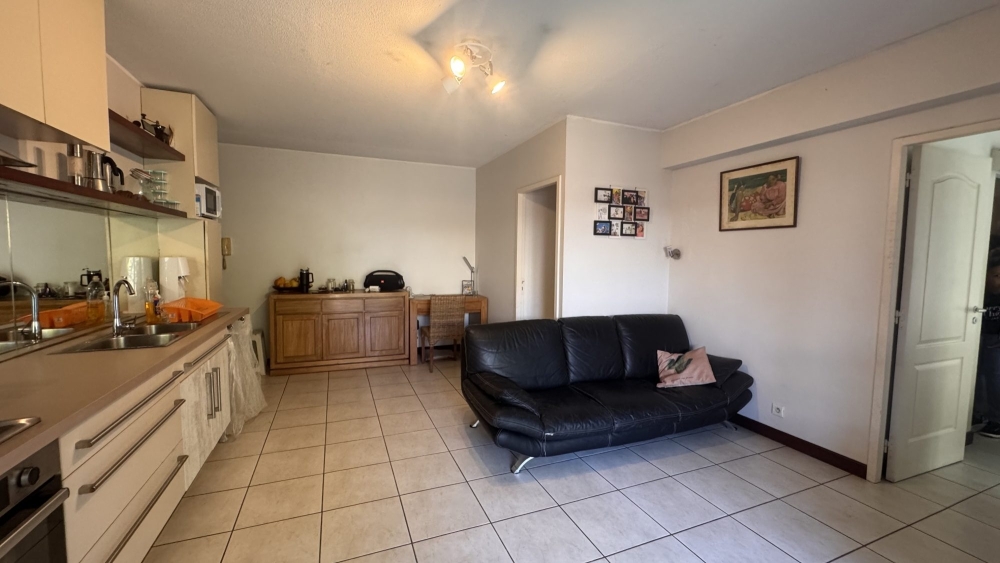 Dans une petite rue en sens unique, au calme, Appartement de 50m², en Rez de jardin, comprenant : cuisine équipée ouverte sur séjour, 2 chambres avec placards, salle de bain, terrasse couverte et jardin.