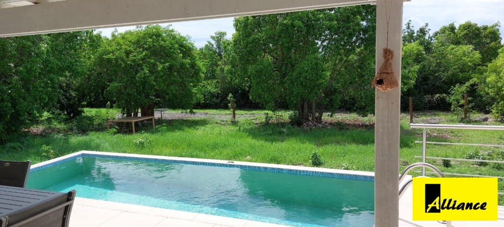 A louer dans le lotissement des Terres Basses, une villa 2 chambres de plain-pied entièrement meublée, terrasse avec accès piscine, jardin, parking.