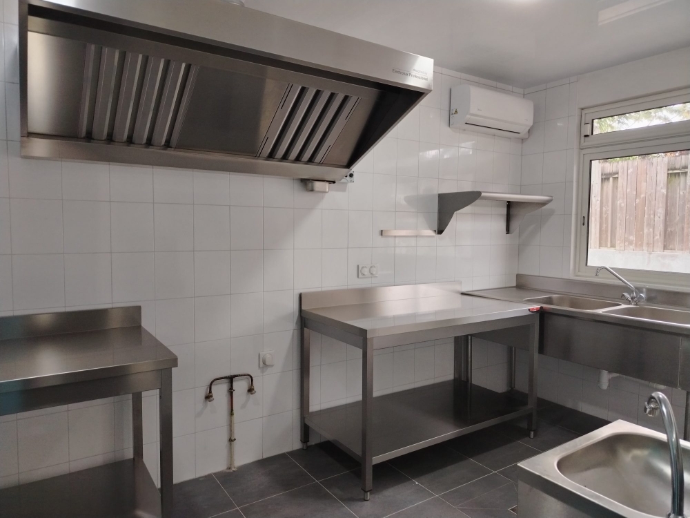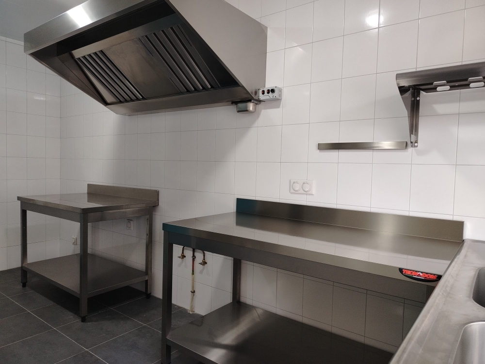 - comprend: 1 hotte, 1 plonge, 1 lave-mains, 2 tables de travail, 1 étagère multifonction, 1 barre magnétique