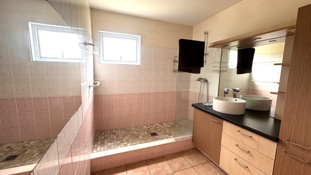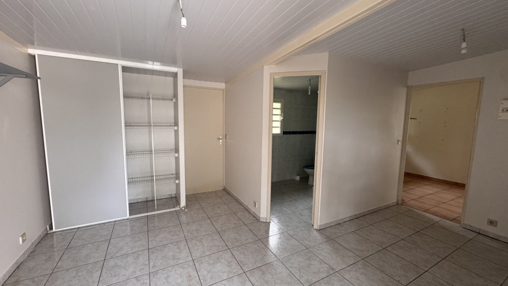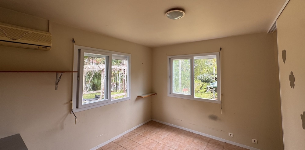 En fond d'impasse, sur un terrain clôturé de 6ares, Villa d 'environ 120m² en ossature métallique comprenant : cuisine équipée ouverte sur séjour , 3 chambres avec placards, une salle d'eau , un studio avec salle d'eau, buanderie , carport et piscine