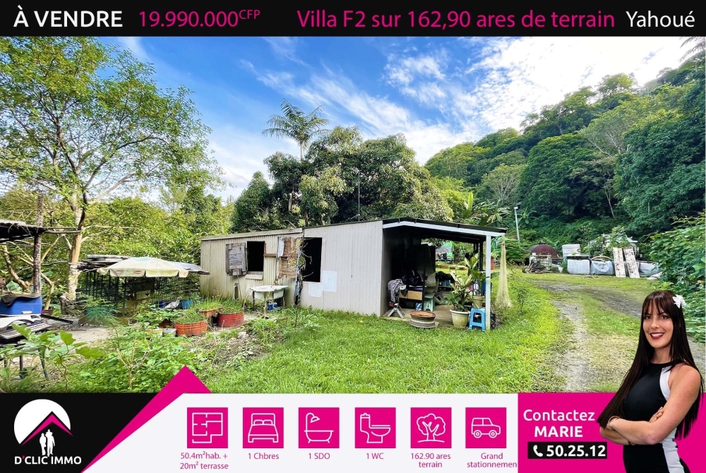 Idéalement située en bout d'impasse, dans un écrin de verdure au pied du Pic Malaoui à Yahoué, l'agence D'CLIC IMMO vous propose un superbe terrain de 1 Hectare 62 ares 90 ca en trois plateformes, avec une construction en tôles datant des années 80 de 50.40m² habitable + 20m² de terrasse, le tout viabilisé en eau et en électricité.