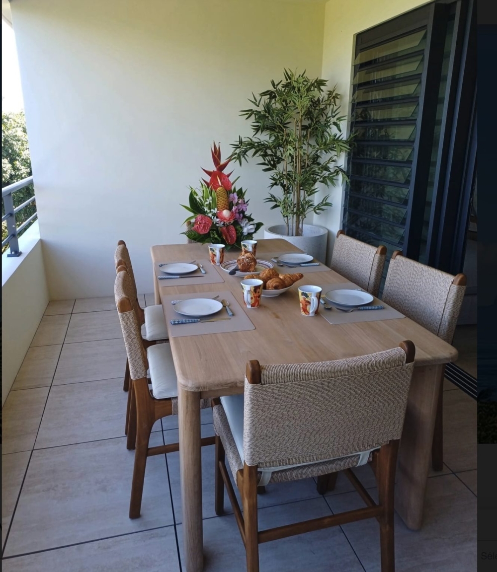dans un immeuble neuf, appartement de deux chambres avec vue Moorea.