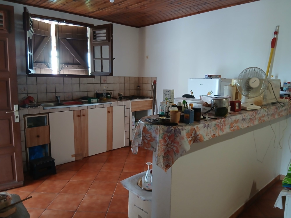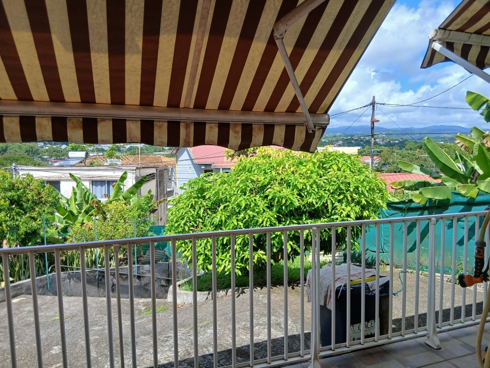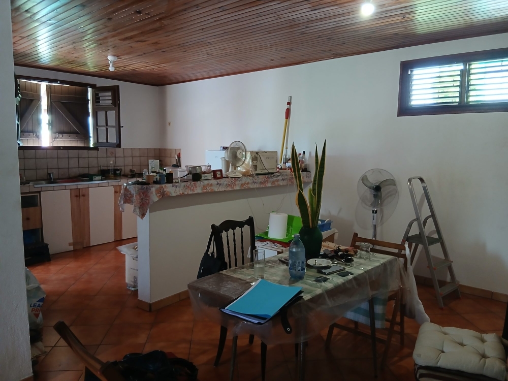 Maison de plain-pied au Lamentin, d'environ 76 m², lumineuse, composée de 2 chambres dont 1 avec placard, d'une salle d'eau, d'un WC indépendant et d'un espace de vie d'environ 44 m², constitué d'un séjour- salon, d'une cuisine style américaine avec accès direct sur la terrasse.