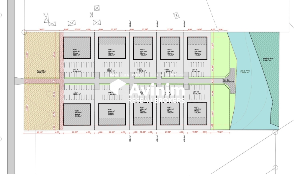 4 lots disponibles à la location (Commerces et stockage) : surface de 600 m2 au sol + option de mezzanine de 600 m2 également.