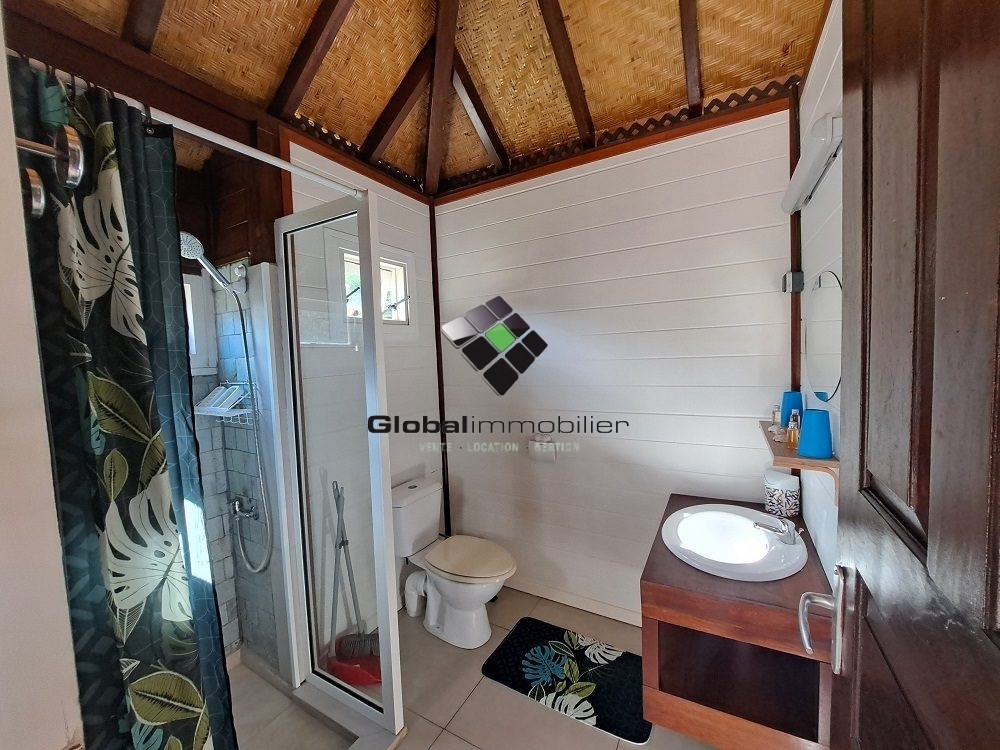 Nous vous proposons à la location, début PAEA, dans un havre de paix, Bungalow, Coté mer, avec accés direct à la plage, équipé, meublé, 1 pièce, terrasse couverte, salle d'eau avec toilette, jardin,.