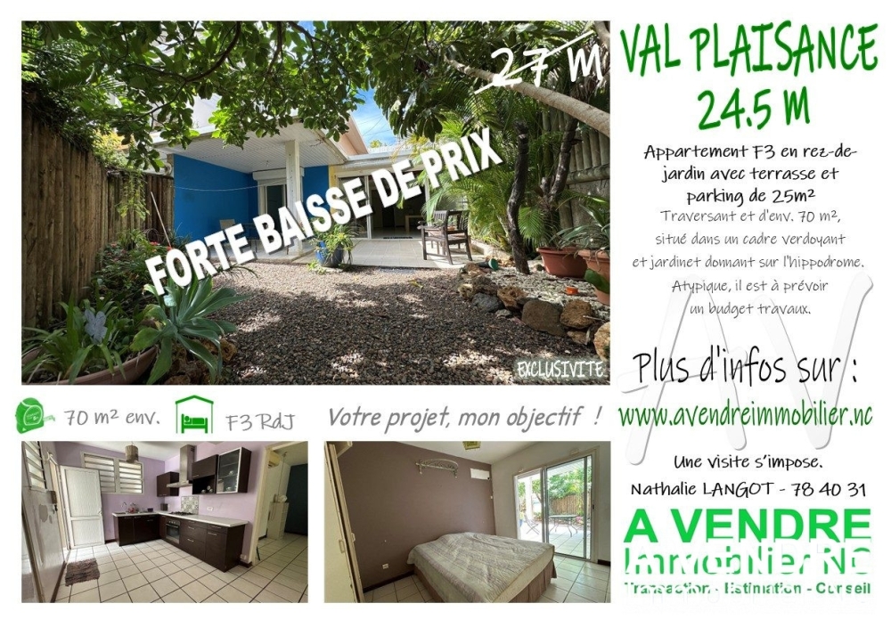 Sous compromis : SOUS COMPROMIS DE VENTE - 01/2026 - 24.5M FORTE BAISSE DE PRIX - VAL PLAISANCE - App. F3 rez-de-jardin traversant d'env. 70 m², situé dans un cadre verdoyant donnant sur l'hippodrome.