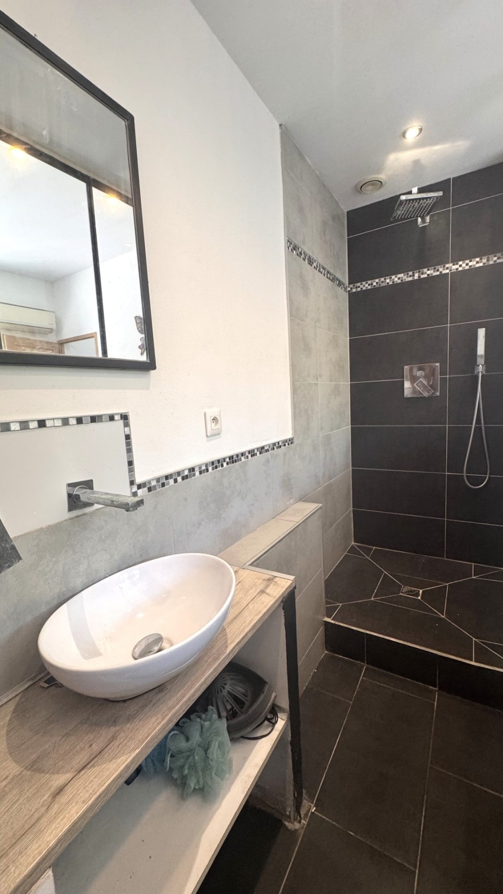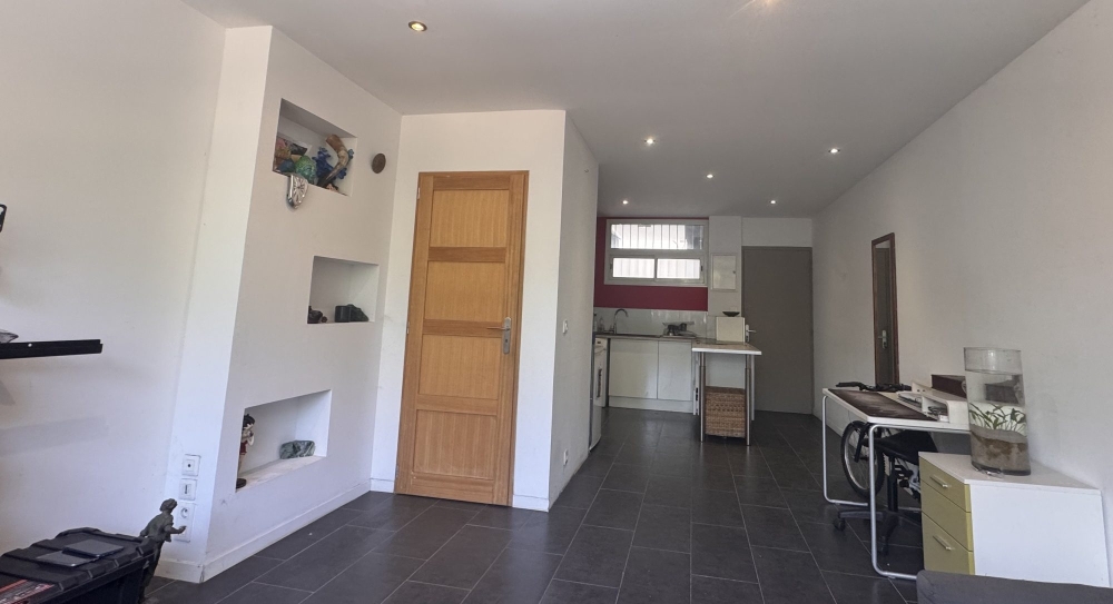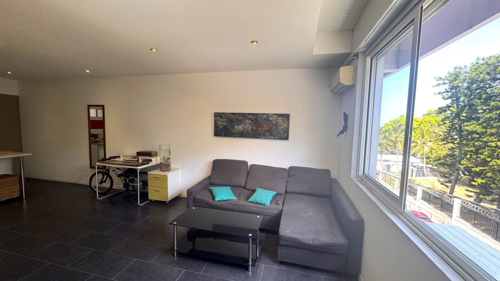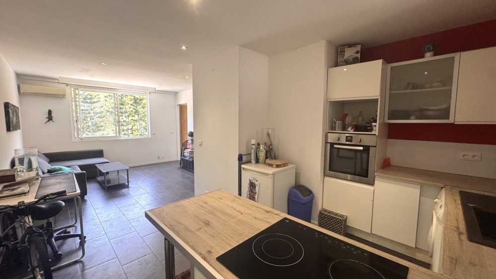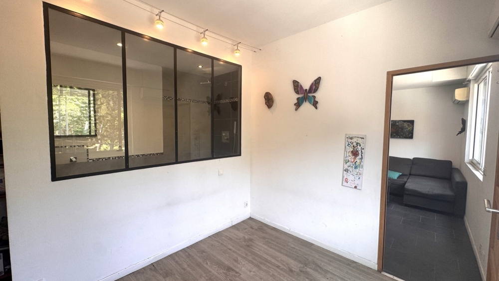 Cuisine équipée ouverte sur séjour climatisé, chambre climatisée avec placards et salle d'eau; wc indépendant .