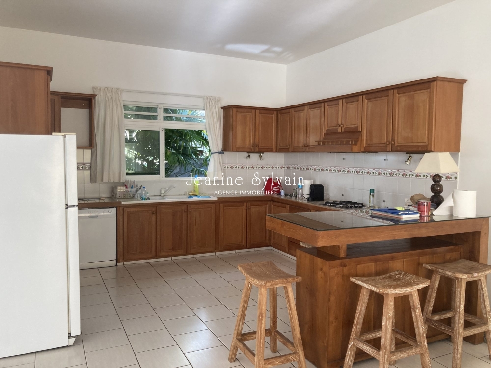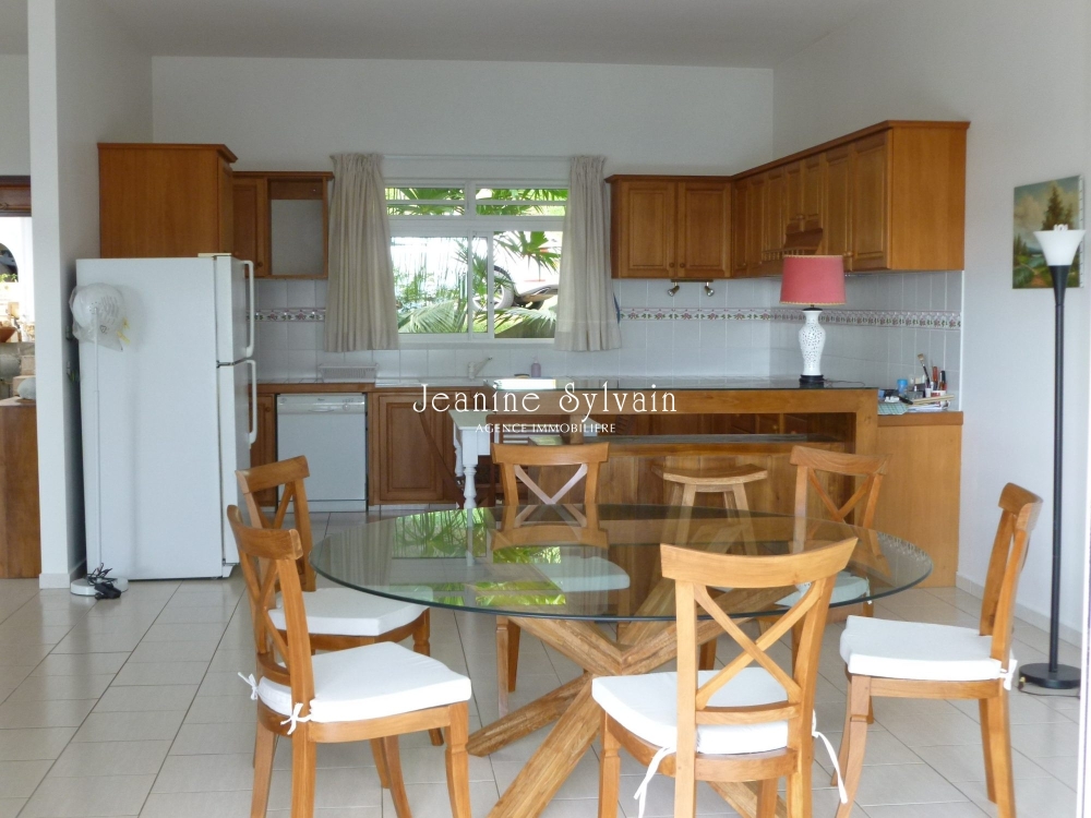 Maison spacieuse et agréable, très belles finitions, comprenant: au rez de chaussé 1 grand salon cuisine, salle à manger, terrasse couverte, 2 chambres dont une avec dressing, 2 salles d'eau, et en rez de jardin 1 chambre avec salle d'eau et réserve. 1 garage couvert, 1 buanderie cellier. Beau jardin plat bien arboré. Vue superbe sur Moorea. L'ensemble est très bien meublé
