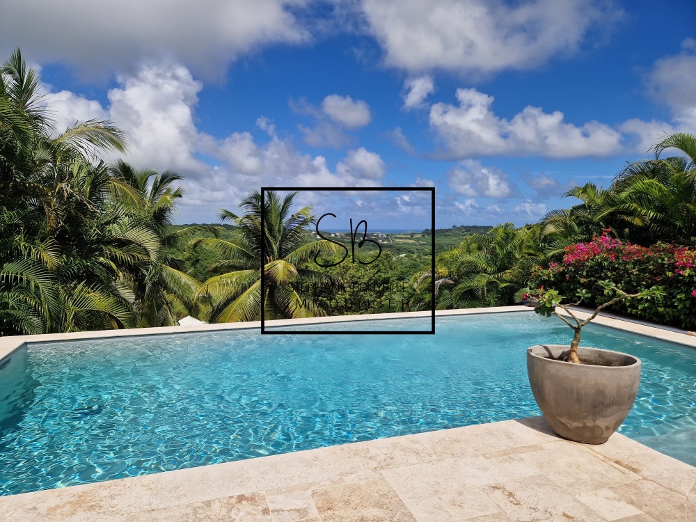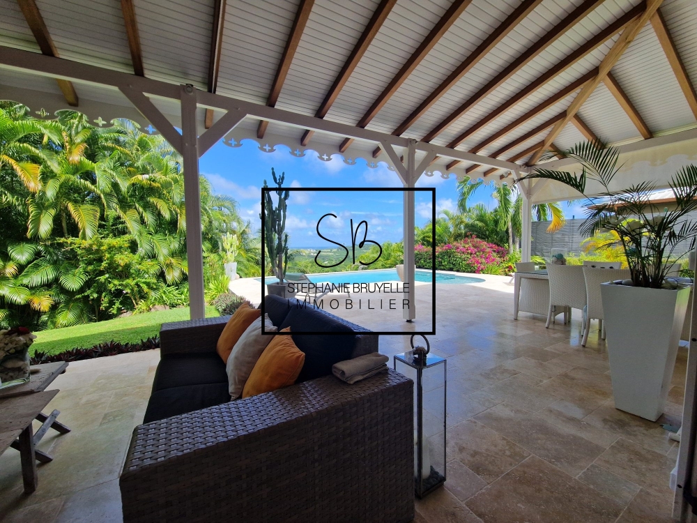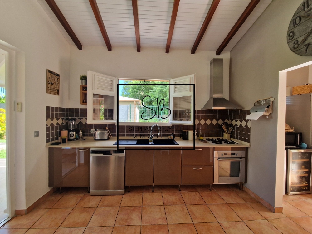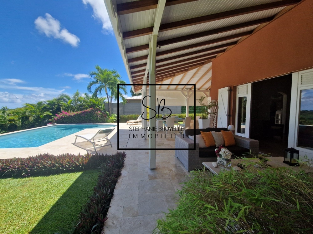 LE VAUCLIN : A proximité du Cap Est, sur les hauteurs, dans un quartier résidentiel haut de gamme au calme et sans vis à vis cette jolie villa créole de plain-pied F5 d'environ 130m² habitable et 40m² de terrasse ouverte sur la piscine vue mer répond à toutes vos attentes sous les Tropiques tant en résidence principale sur la Côte Atlantique qu'en résidence secondaire/location saisonnière. Construite sur un terrain de 1500m² clôturé superbement paysagé, amoureux des Jardins Tropicaux : le calme et la douceur de vivre y sont les maîtres mots. Composée d'un séjour de 40m² environ, une cuisine aménagée traversante (+ cellier). L'espace nuit est composé d'une suite parentale avec accès jardin/piscine (dressing, salle d'eau wc), de 3 chambres climatisées et d'une salle d'eau. La villa est orientée vue mer, ouverte sur la terrasse avec espace repas et espace salon et plage périphérique autour de la piscine pour vos bains de soleil/apéritif avec les amis. Nombreuses places de parking sur la propriété. Fosse conforme. Possibilité de construction complémentaire. Bien soumis au DPE : Catégorie C. STEPHANIE BRUYELLE IMMOBILIER au 06 96 81 11 91.