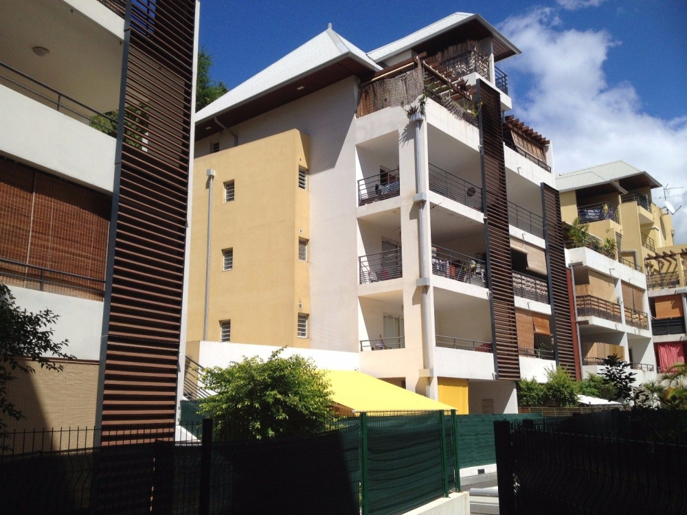 SAINT-DENIS, Bas de la Rivière - Résidence Les Marquises, 105 rue de la République - Appartement de type F2 au 3ème étage avec ascenseur, d'une superficie habitable de 50,5m² + 14,1m² de varangue, comprenant: 1 séjour, 1 cuisine aménagée et équipée, 1 chambre climatisée avec placard, 1 salle d'eau avec wc, 1 parking sous sol.