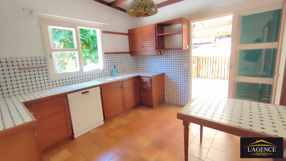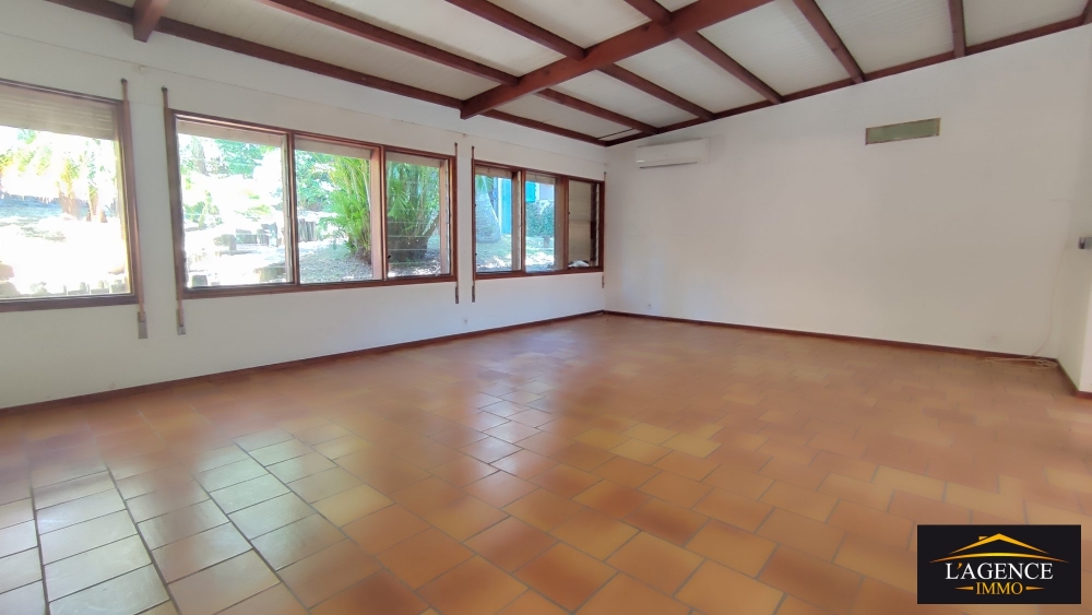 Elle se compose d'une entrée, d'une cuisine aménagée et indépendante, un grand espace de vie avec belle hauteur sous plafond qui donne sur une belle terrasse couverte; 1 chambre spacieuse et climatisée, un dégagement avec de nombreux placards, 2 autres chambres avec un espace commun bénéficiant d'entrée indépendante; 2 salles d'eau dont une avec sanitaire, un sanitaire indépendant.