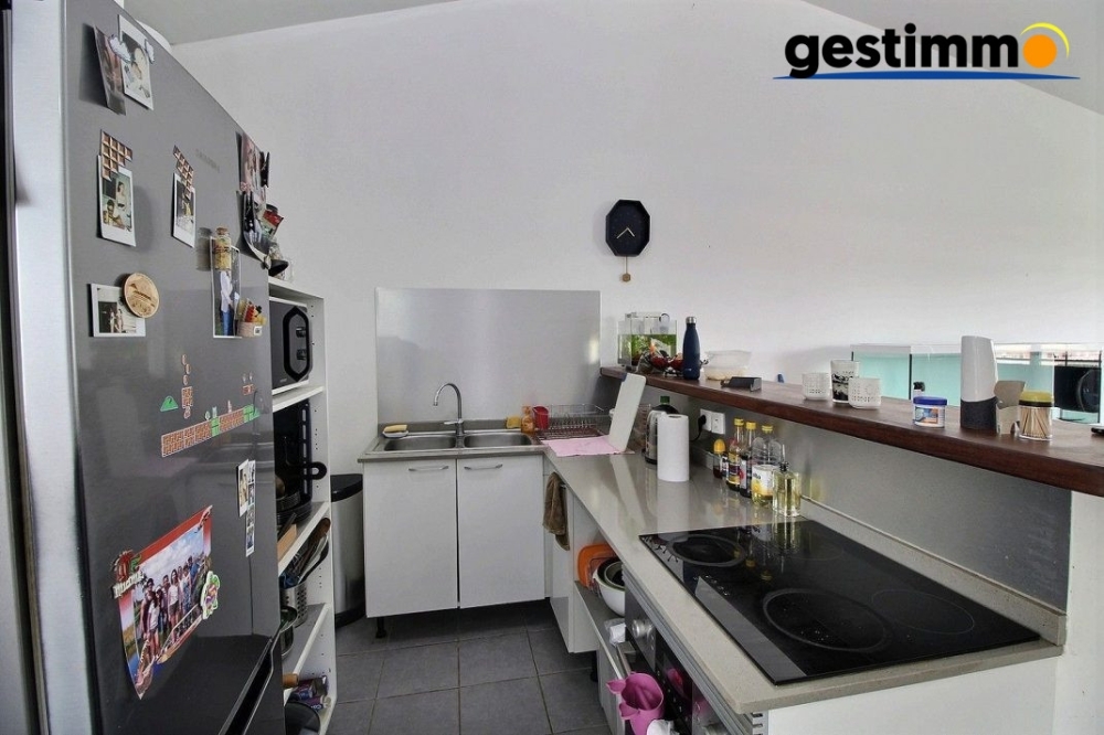 L'entrée s'ouvre sur une cuisine fonctionnelle accompagnée d'une buanderie attenante, suivie d'un séjour lumineux et d'un espace bibliothèque/bureau idéal pour le télétravail ou l'étude. Le bien comprend également deux chambres, une salle d'eau moderne et un WC indépendant.Vous apprécierez sa varangue d'environ 12 m², parfaite pour profiter des soirées en extérieur, ainsi que ses deux places de parking privatives.