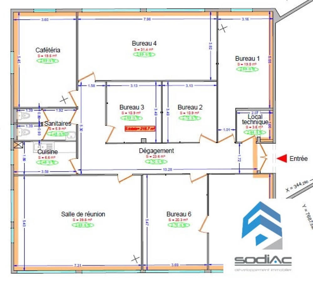 Bureaux 0 pièce 212 m²