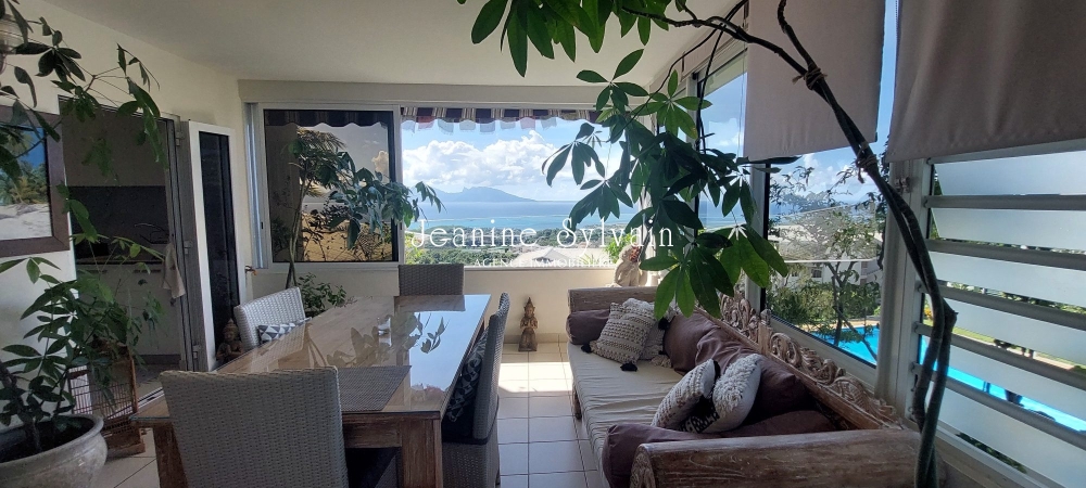 Punaauia, à proximité immédiate de l'Université, dans une jolie résidence de bon standing avec espace jardin commun et bel espace piscine, superbe appartement F3 meublé de 78m2 entièrement rénové et très joliment meublé, belle terrasse couverte face à la mer et Moorea pour apprécier les couchers de soleil.