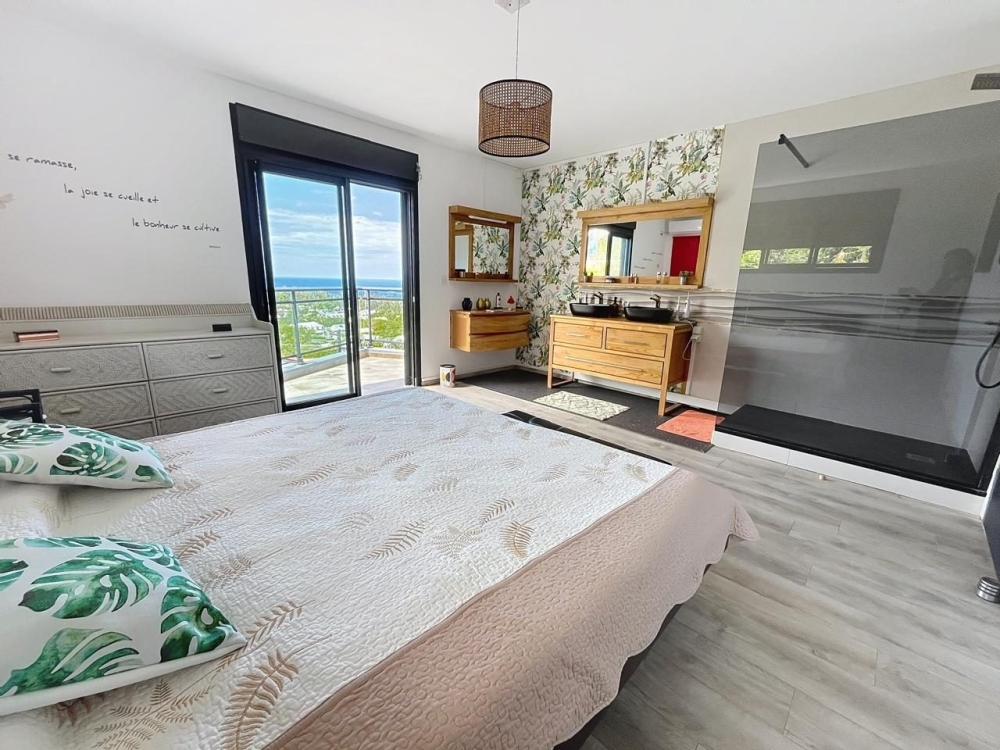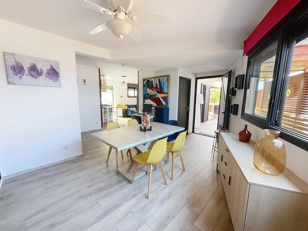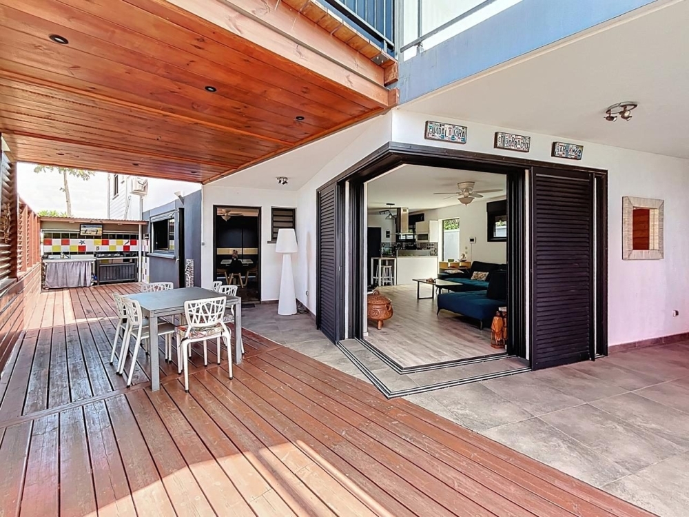 À deux pas du centre-ville de Saint-Leu, découvrez cette maison mitoyenne de 2017, d'environ 128 m², en parfait état, alliant confort, luminosité et cadre de vie idéal. Elle dispose : - Au RDC : D'un vaste séjour avec cuisine ouverte, accompagnée d'un cellier attenant, le tout s'ouvrant sur une grande varangue avec jacuzzi et offrant une belle vue sur la mer, wc indépendants. - A l'étage : 3 chambres, dont une suite parentale avec salle d'eau et grande terrasse avec vue mer, une salle d'eau indépendante, wc indépendants. Il est possible d'aménager une 4? chambre au RDC, selon vos besoins. Possibilité également de garer deux véhicules dans la propriété. Vous bénéficiez également d'un abri de jardin, pour les stocker, vélos, outils, etc. Le tout dans un secteur calme et recherché, à quelques minutes à pied de la plage, des commerces et des écoles. Un bien rare sur le marché de Saint-Leu – à visiter sans tarder !