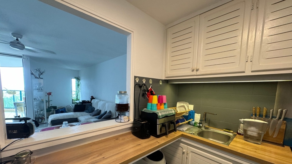 VUE MER ET HORIZON DÉGAGÉ : Depuis le balcon, vous profitez d'un horizon lumineux et d'une perspective ouverte sur la ville et l'océan, idéale pour un moment de détente ou un repas en extérieur.