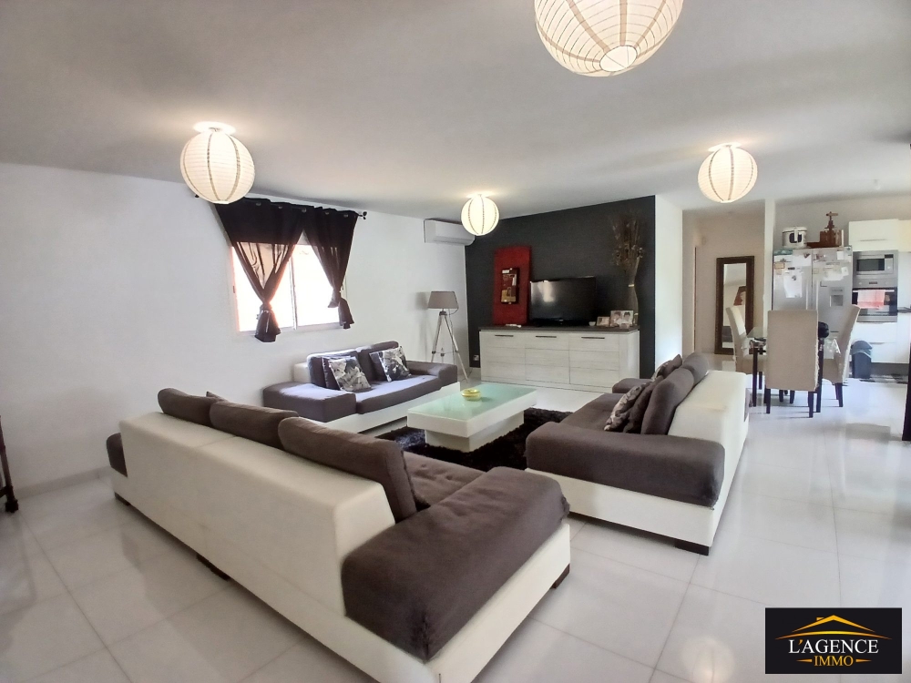 Au sein d'une rue calme du lotissement Les Trois Vallées, villa F4 d'une superficie d'environ 125m² composée d'une entrée avec espace buanderie, d'une cuisine équipée et aménagée, d'un lumineux séjour climatisée, d'une salle d'eau, d'un WC séparé, de deux chambres avec placards dont une climatisée, d'une suite parentale avec dressing non aménagée, salle d'eau et WC et d'une terrasse couverte donnant sur un terrain d'environ 22ares.