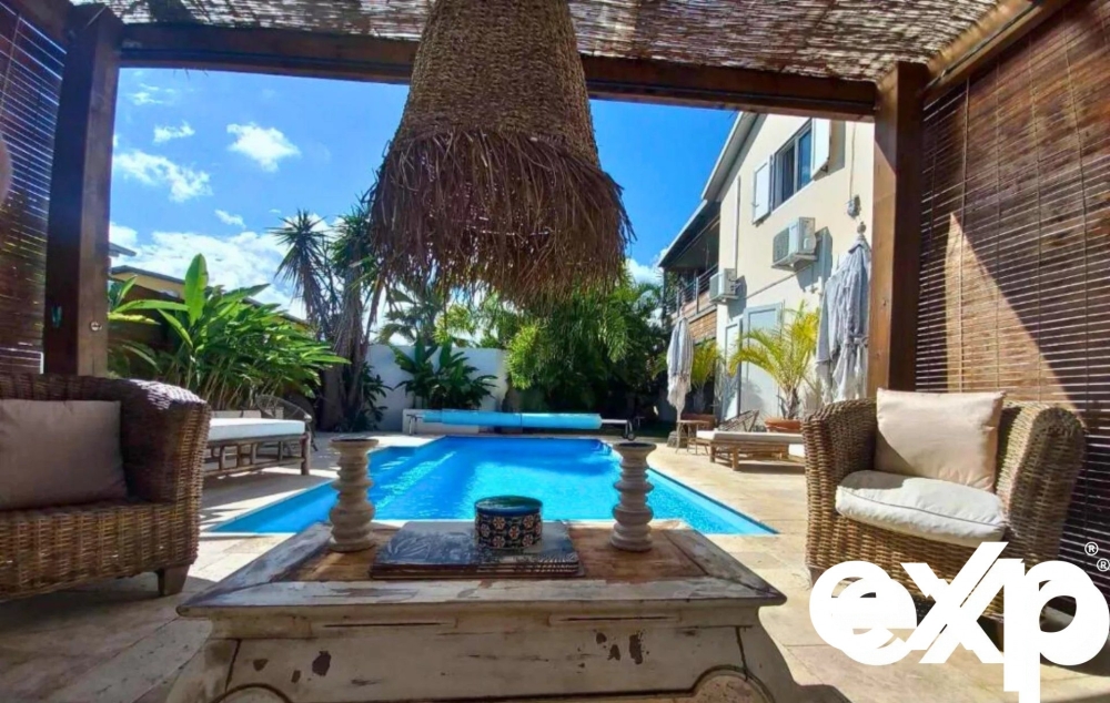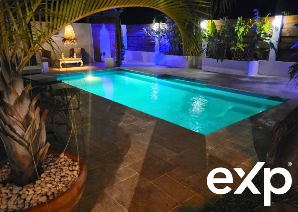 Côté extérieur, la magie opère : piscine privée, jardin tropical paysager, terrasses multiples, cuisine extérieure couverte et coin lounge composent un espace de détente unique, à l'abri des regards, baigné par le soleil et les alizés.