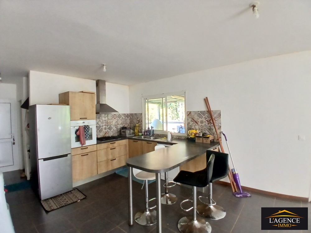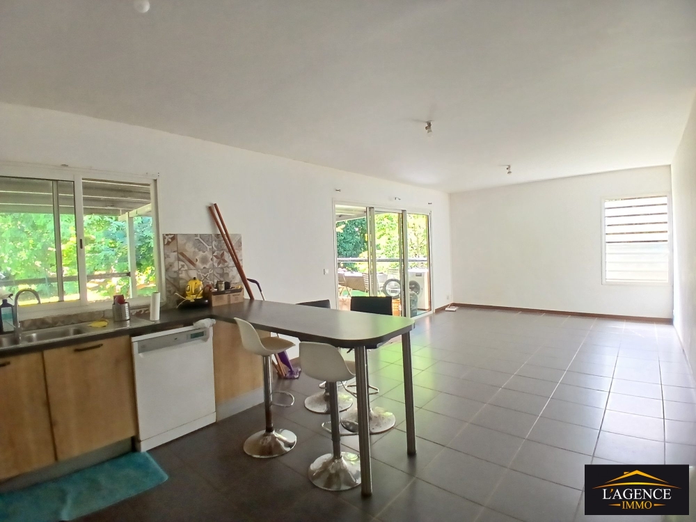 Dans un quartier résidentiel et proche de la rivière, villa F3 d'une superficie d'environ 75m² composée d'une cuisine équipée et aménagée, d'un séjour, d'une buanderie, d'une salle d'eau, d'un WC indépendant, de deux chambres avec rangements et d'une grande terrasse couverte de 42m².