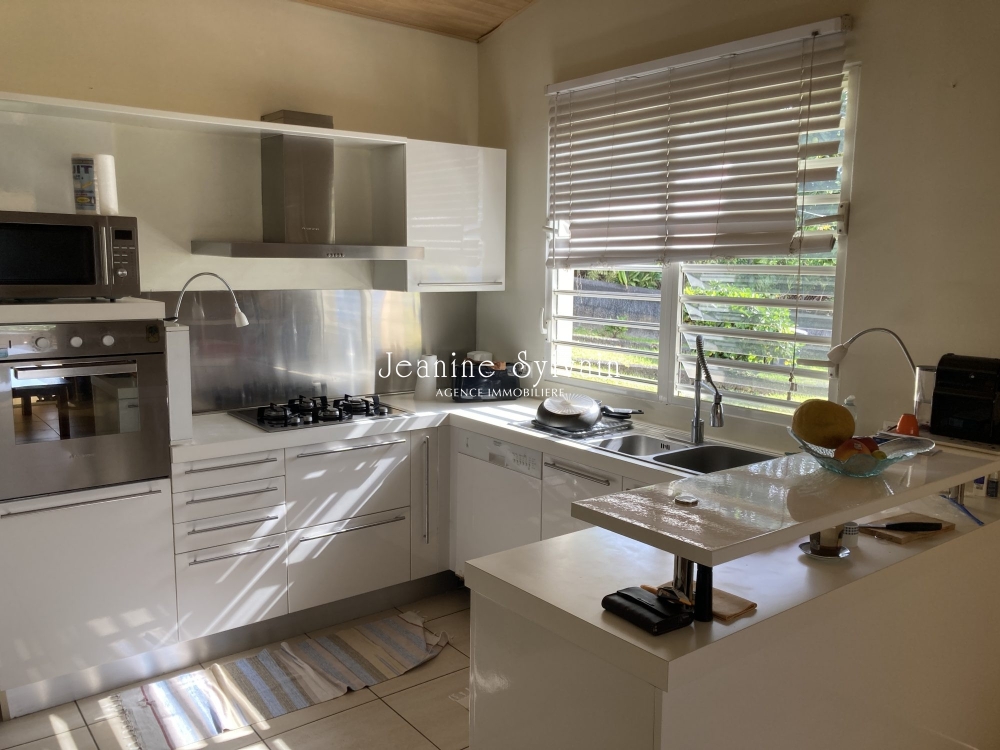Sur les hauteurs de Super Mahina, belle maison récente sur un terrain arboré et clôturé avec vue mer, comprenant un salon, une cuisine équipée, une arrière cuisine, 2 chambres climatisée dont une parentale avec salle d'eau attenante, une salle d'eau, puis au R-1, une chambre climatisée et sa salle d'eau, une buanderie.
