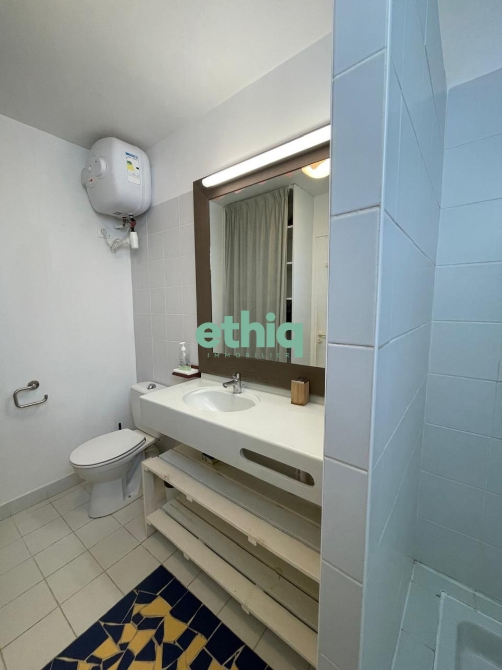 Idéal pour un investissement locatif saisonnier, ce studio d'angle de 26 m² offre une vue mer exceptionnelle et bénéficie d'un espace légèrement plus grand que les autres logements du complexe, avec une kitchenette entièrement équipée et un emplacement prévu pour un canapé-lit en plus du lit principal (capacité jusqu'à 4 personnes).