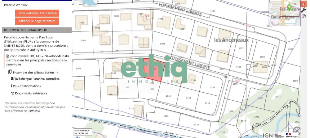 D'une surface de 812 m², non inondable, classé en zone UG, autorisant une emprise au sol maximale de 25 %, soit une maison de plus de 200 m² de surface au sol.