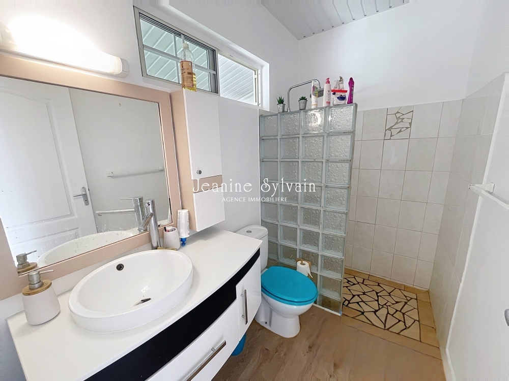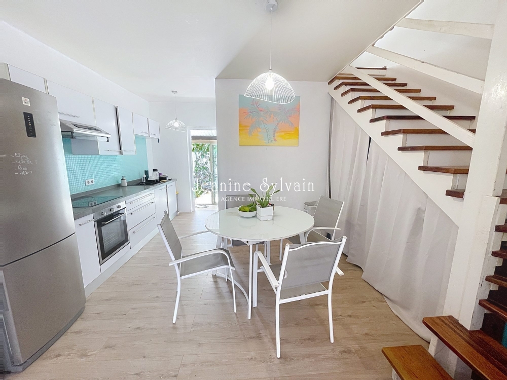 RDC : Salon, salle à manger, cuisine équipée, salle d'eau avec WC, buanderie extérieure.