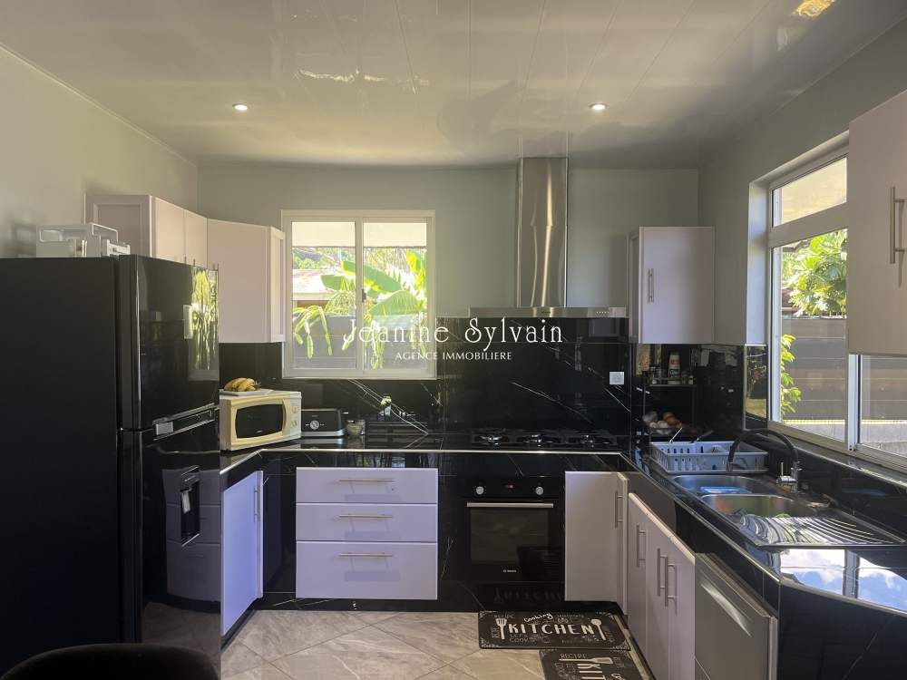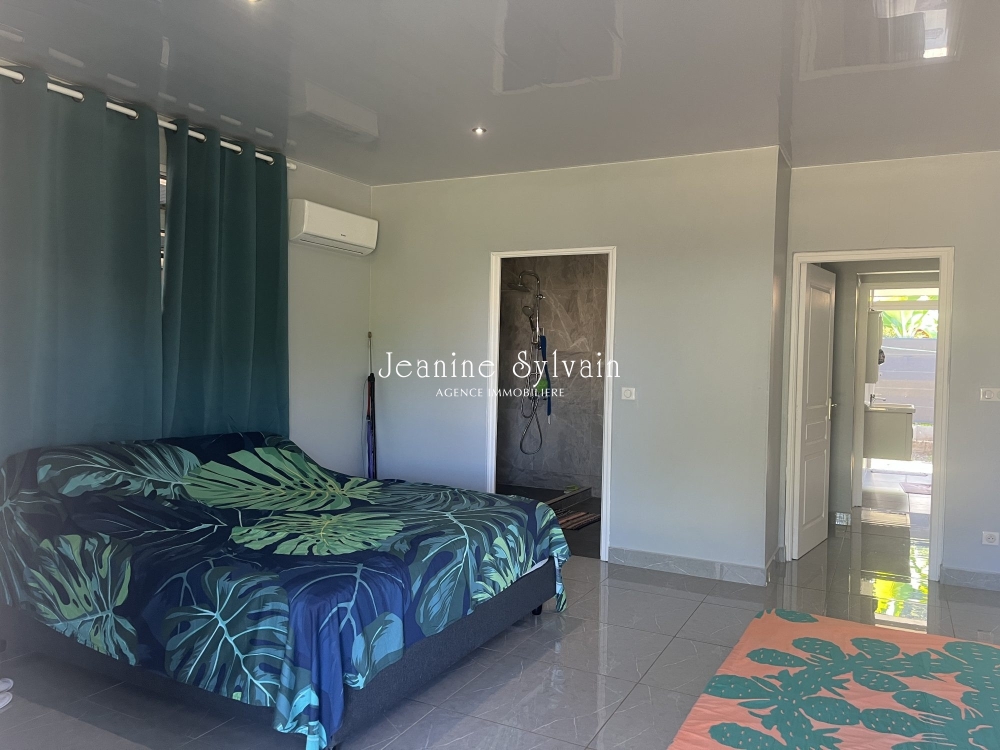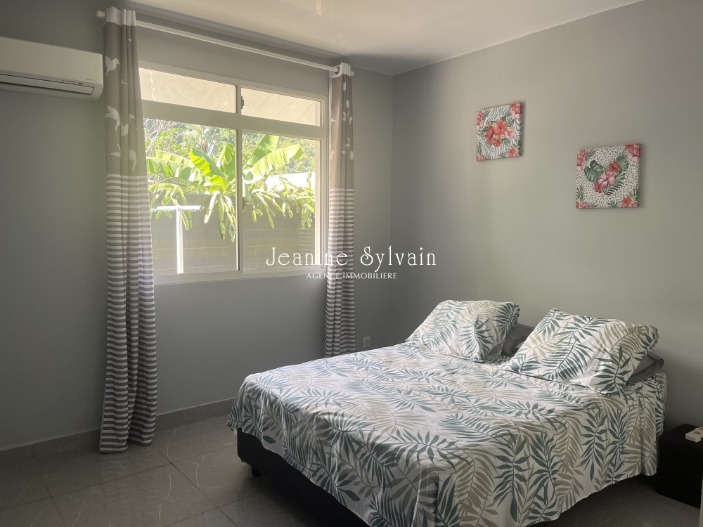 Tout proche de la plage de sable de blanc du PK18, dans un grand jardin clôturé avec portail automatique c/montagne, maison spacieuse refaite à neuf, comprenant 3 chambres climatisées, 2 salles d'eau, un séjour, cuisine équipée aménagée avec bar, terrasse couverte, abri voiture couvert, buanderie.